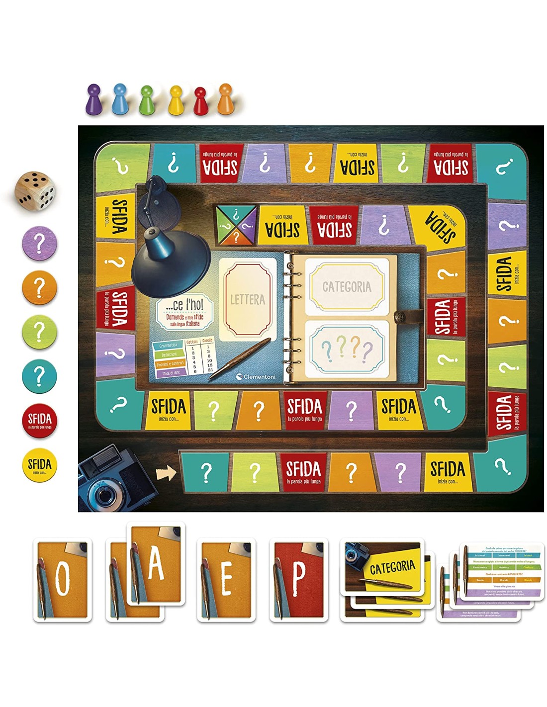 Un gioco da tavolo con 400 domande e mini sfide legate alla lingua italiana Lancia il dado, fai avanzare la pedina e mettiti in gioco rispondendo alla domanda o affrontando la sfida.