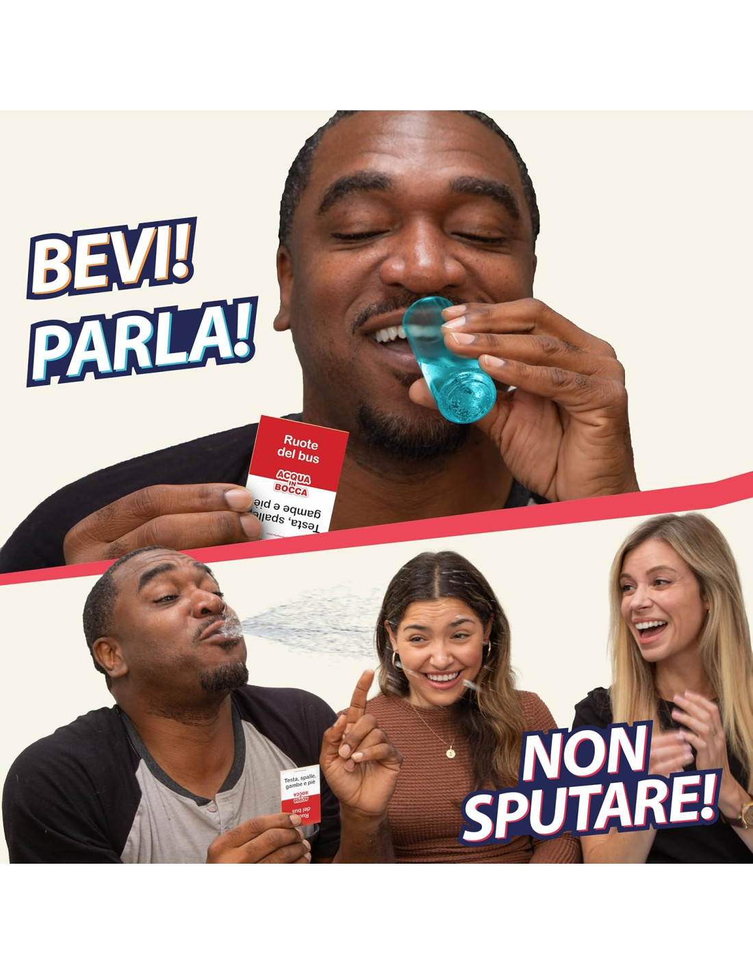 VERSIONE IN ITALIANO PER UN DIVERTIMENTO ASSICURATO: ACQUA IN BOCCA è completamente in italiano, per rendere ogni partita più fluida e divertente. Niente barriere linguistiche: solo tanto divertimento per tutta la famiglia o per un gruppo di amici pronti a ridere insieme.