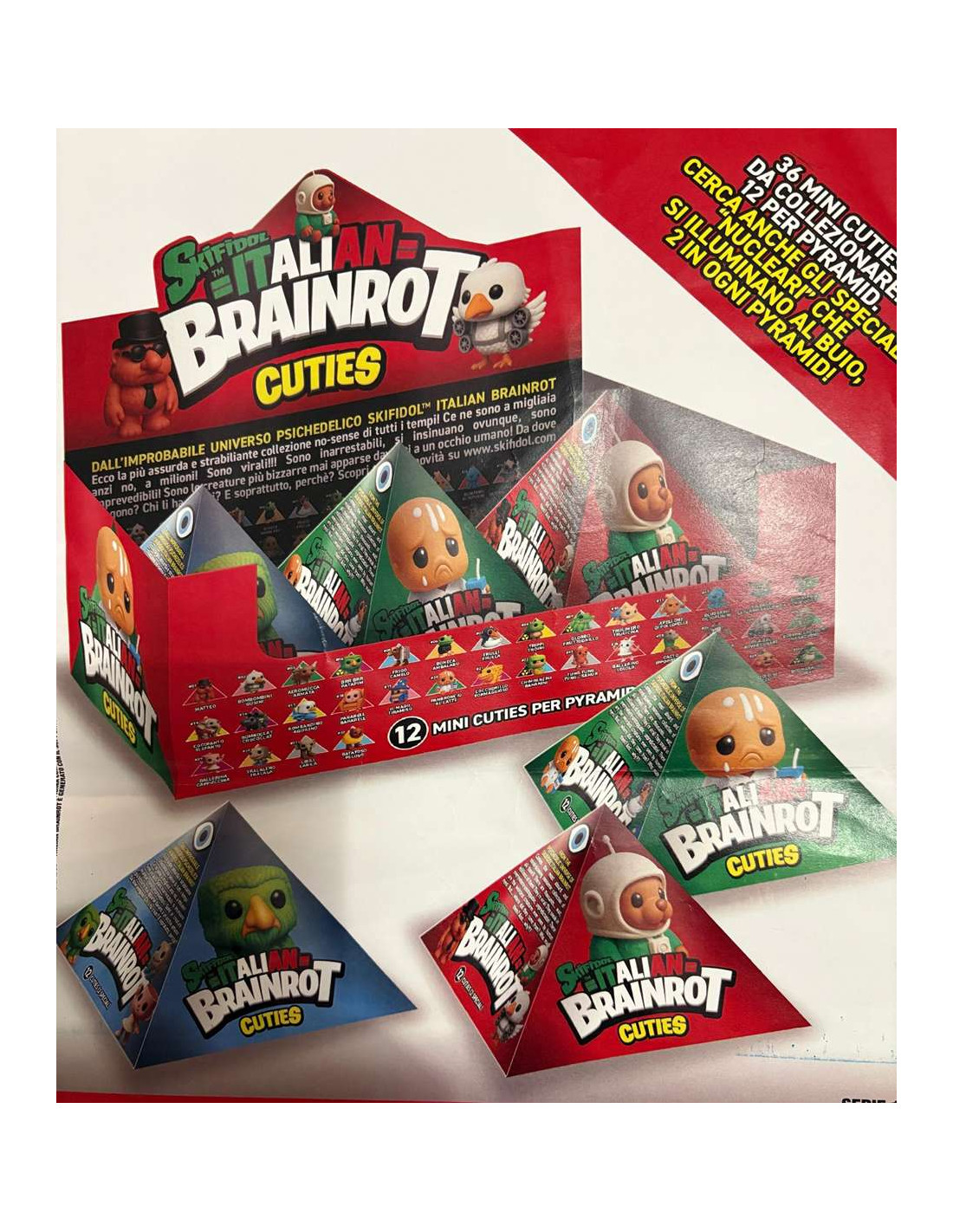 36 mini cuties da collezionare 12 per piramide e 2 speciali "nucleari" in ogni piramide
