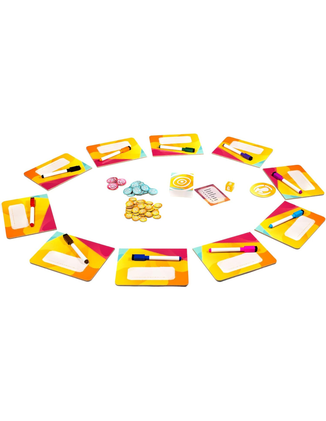 REGOLE SEMPLICISSIME - ZERO DOWNTIME: Segui il flusso Scrivi → Passa → Cancella → Indovina. Non servono abilità particolari: bastano un pennarello, idee chiare e senso dell'umorismo. Tutti giocano quasi in contemporanea, senza tempi morti. Ideale per 3–10 giocatori, 10+ anni, partite da circa 30 minuti; si spiega in un minuto e diverte subito.
