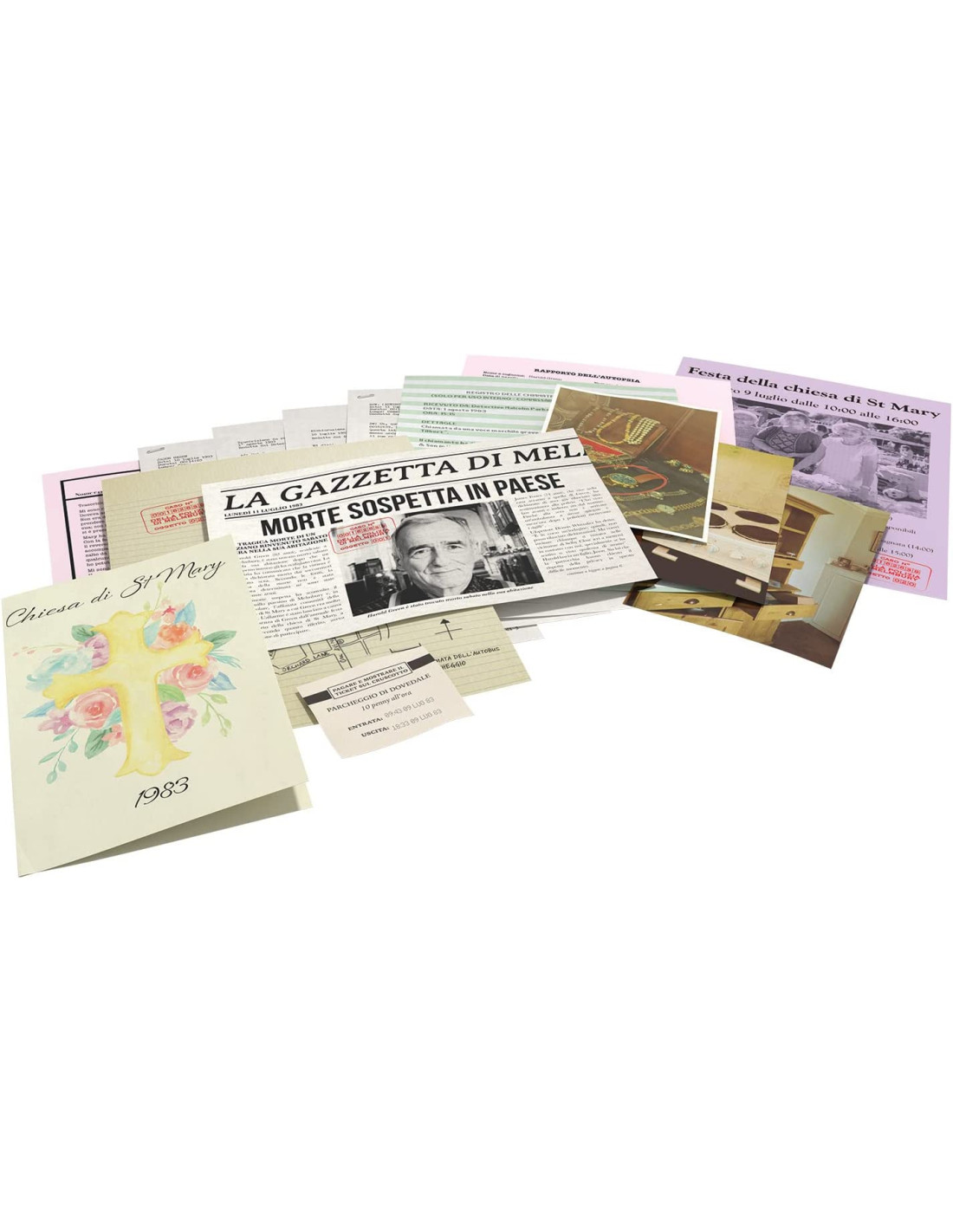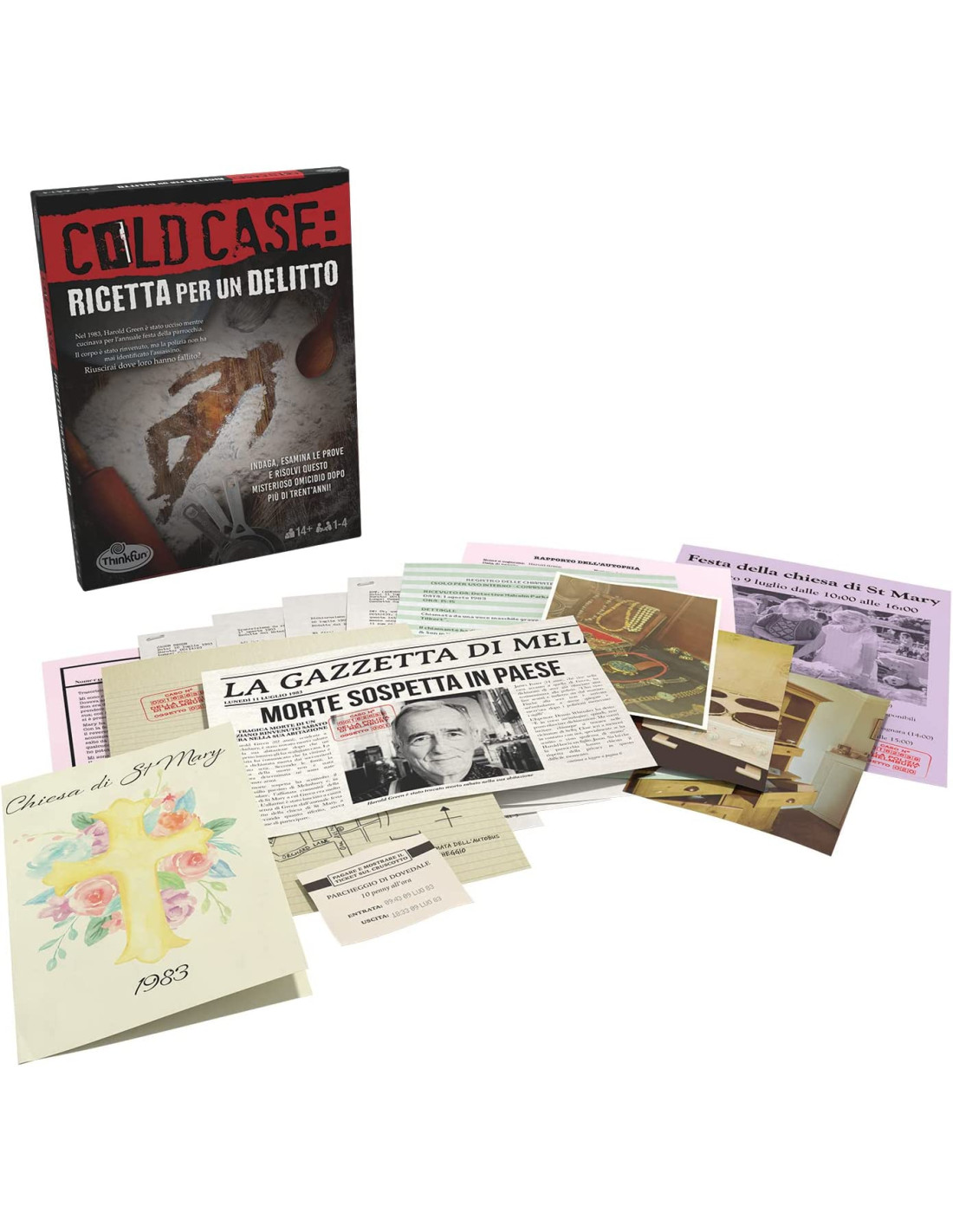 Uno stimato signore rinvenuto senza vita mentre stava preparando dei dolci per la fiera della parrocchia. Un prezioso orologio scomparso dalla scena del delitto. Saprete risolvere questo avvincente mistero? Indaga, esamina le prove e risolvi questo misterioso omicidio dopo più di trent'anni! Usa tutta la tua logica per risolvere il mistero! Un'esperienza investigativa coinvolgente. Contiene moltissime prove che ti aiuteranno a risolvere il caso. Giocabile in piccoli gruppi o da soli
