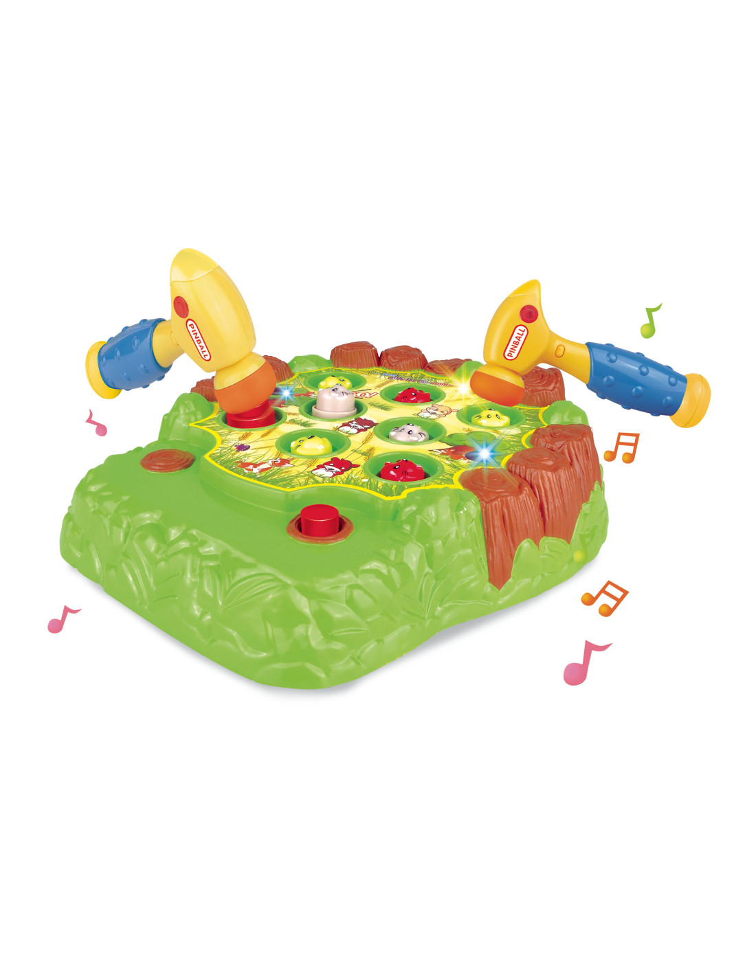 Colpisci le talpe con i martelli quando spuntano dalla tana. Se il colpo va a segno si attivano luci e suoni Età consigliata: 3 anni +