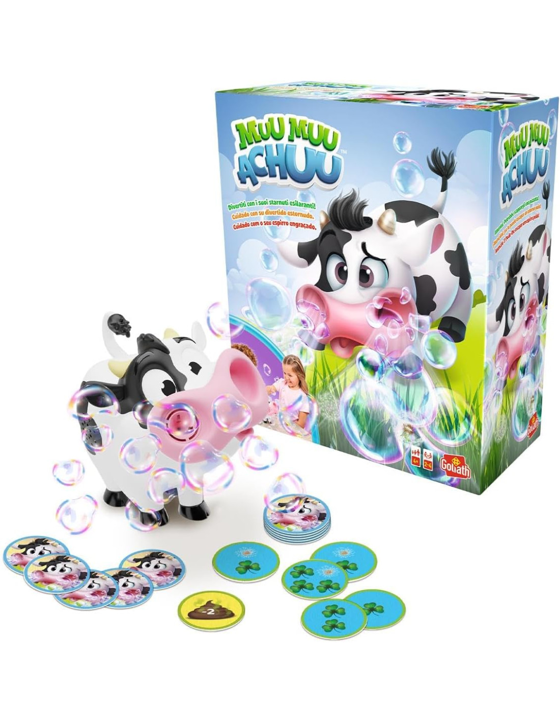 Goliath, Muu Muu Achuu, Gioco in Scatola per Bambini e Bambine dai 4 Anni in su, Simpatica Mucca che Fa le Bolle, con Suoni e Starnuto