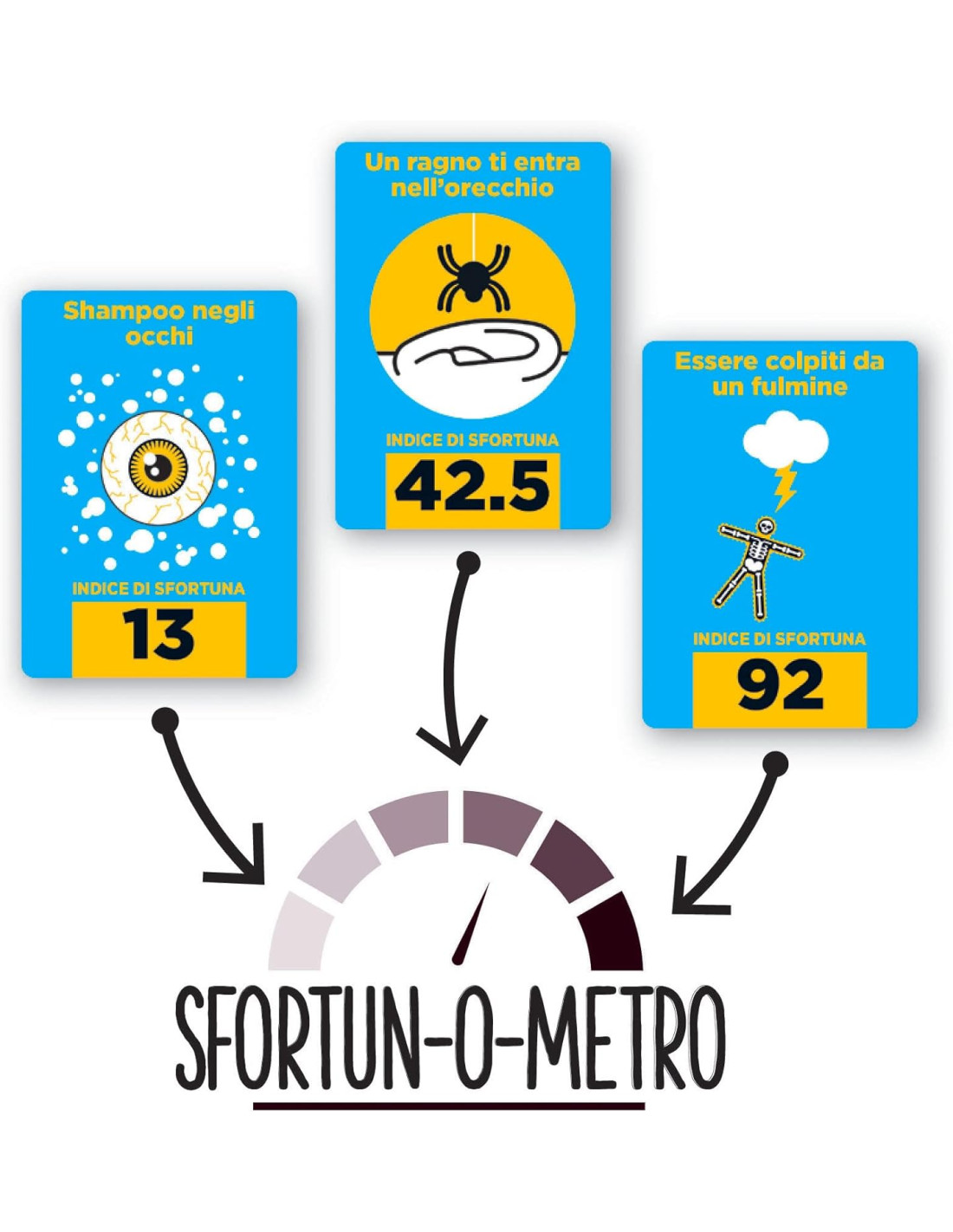 Riuscirai ad essere il migliore a classificare eventi spiacevoli da "mhh" al peggiore in assoluto? Il primo giocatore che allinea 10 carte correttamente nel suo SENTIERO DELLA SFORTUNA ha vinto!