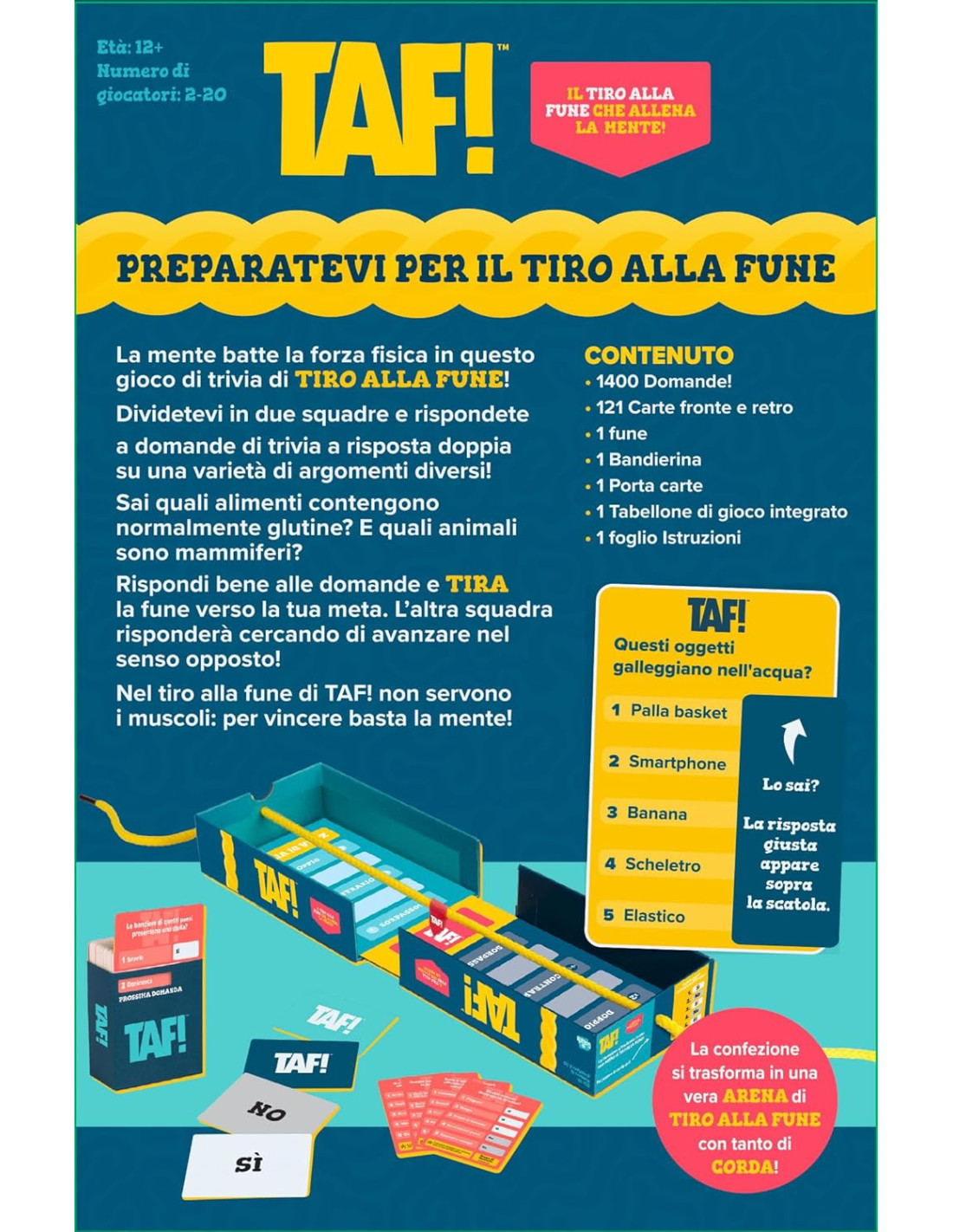 TAF! - Tiro alla Fune - Gioco per adulti e bambini dai 12 anni in su - Divertente gioco da tavolo con domande a quiz e tiro alla fune - Sfida i tuoi amici - squadra con Vera Corda - in italiano