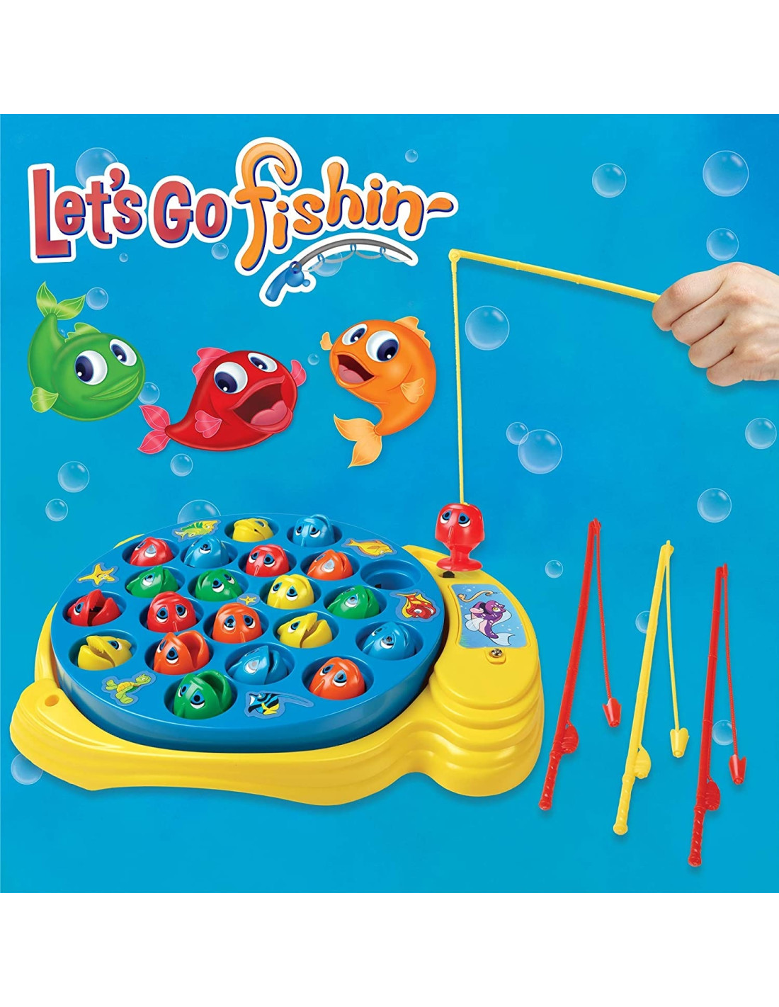 L'originale gioco della pesca! pesca più pesciolini che puoi con l'intramontabile gioco della pesca; gioca da solo o sfida fino a 3 amici! chi vincerà? mentre la base ruota, i giocatori devono pescare più pesci possibili, un pesce alla volta; chi ne pescherà di più?