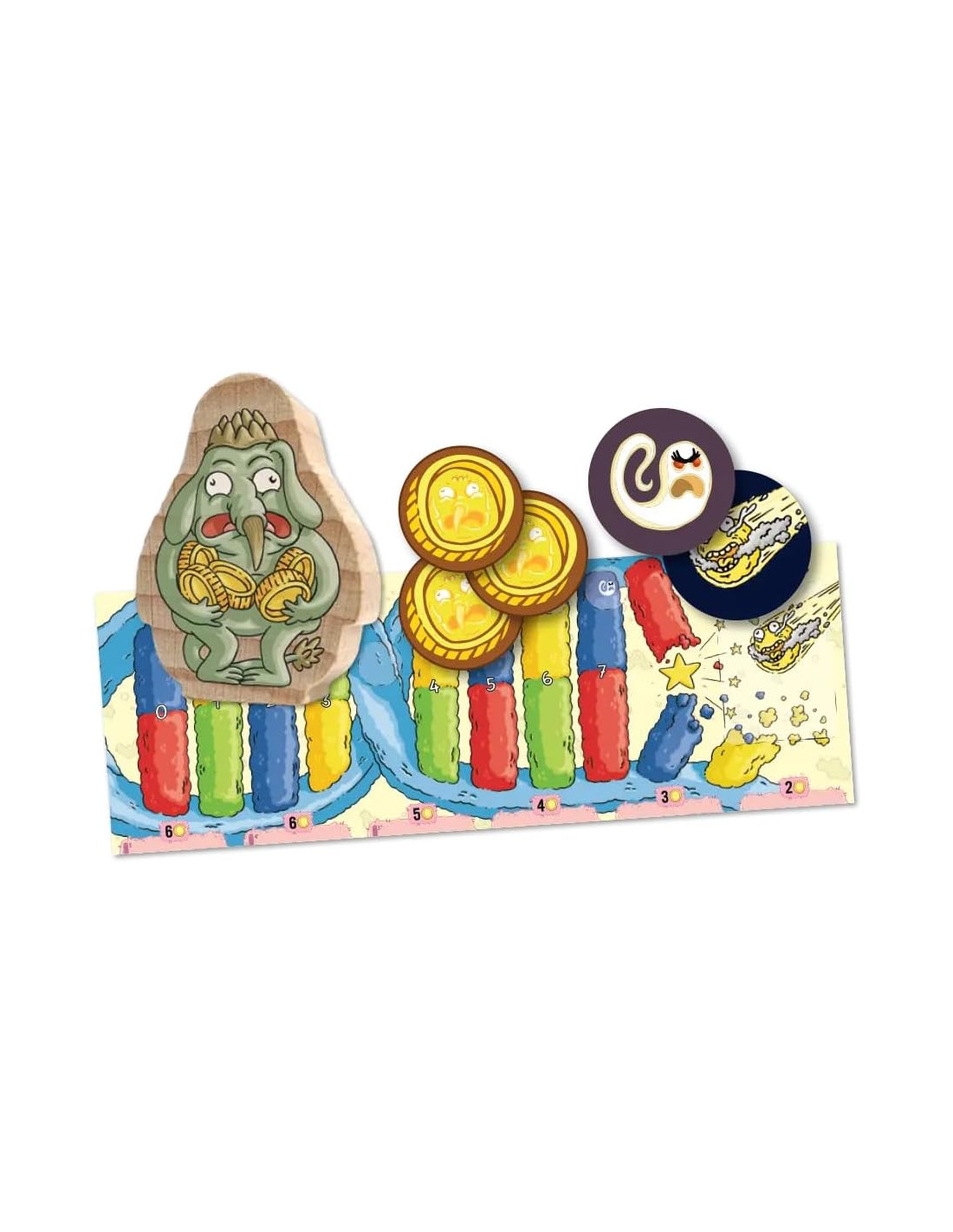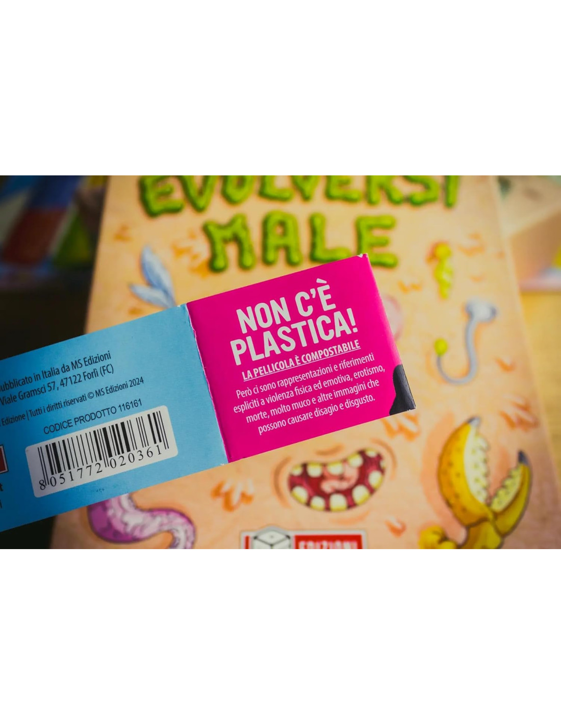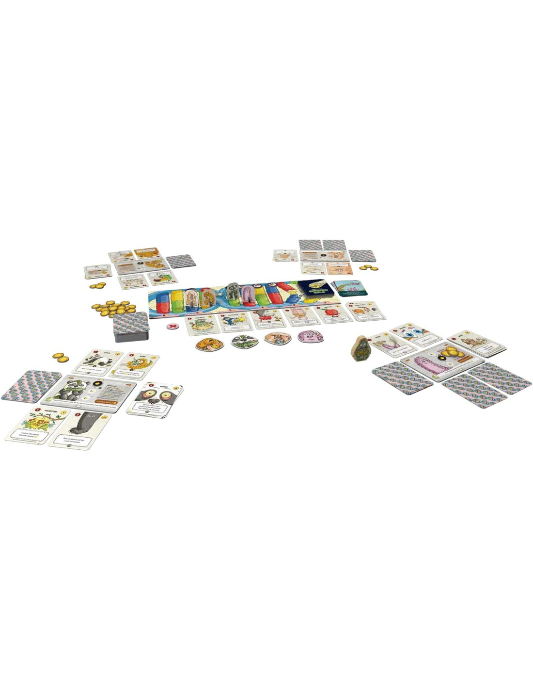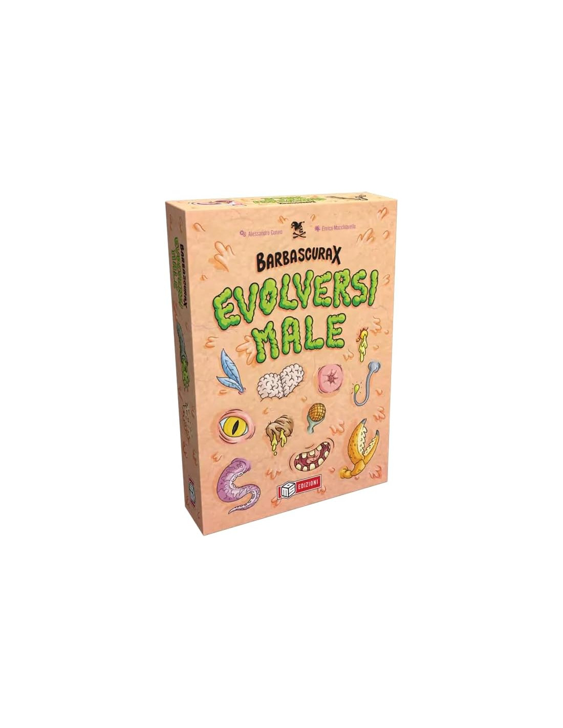 Scegli tra 6 animali! Tardigrado, Orca, Cetriolo di Mare, Camaleonte, Panda e Mantide, ognuno con un suo potere speciale! Più di 100 Carte Originali! Ogni illustrazione è unica e interpretata dalla mente visionaria di Enrico Macchiavello. Un massiccio Totem di legno e… 1 acidissimo Tabellone, 36 gettoni Evoluzione, 6 segnalini Pressione Evolutiva e molto, molto altro!