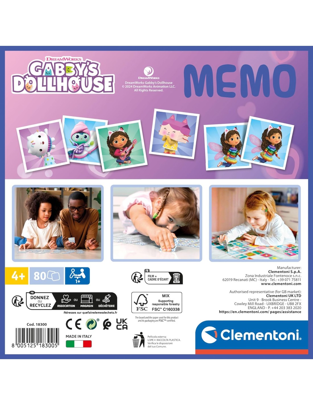 Clementoni - 18300 - Memo Gabby's Dollhouse - Gioco Di Memoria E Associazione, Carte Da Accoppiare, Gioco Educativo Bambini 3 Anni, Gioco Di Carte, Gioco Da Tavolo Bambini, Made In Italy