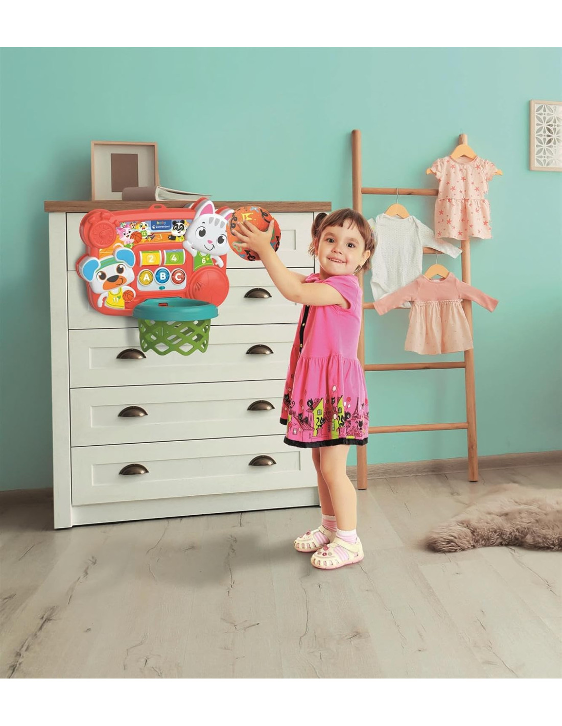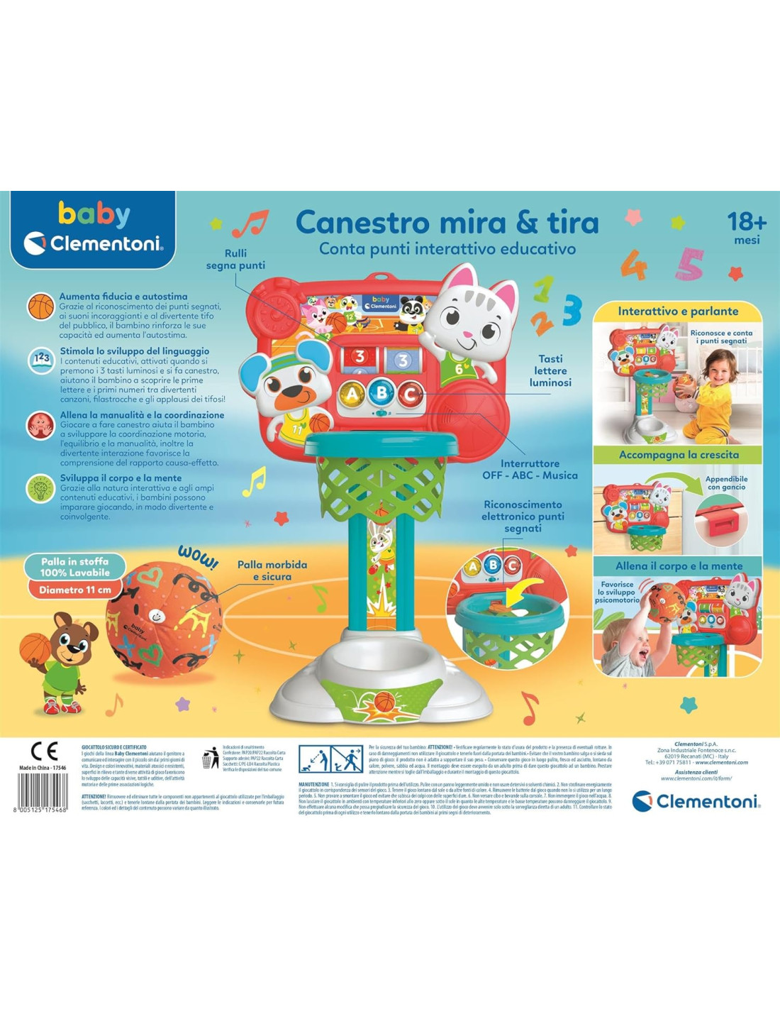 COME GIOCARE: Il Canestro permette ai bambini di sviluppare manualità e coordinazione lanciando la palla nel canestro, aumenta la fiducia e l'autostima, stimola lo sviluppo e il linguaggio con i contenuti educativi che si attivano a ogni canestro