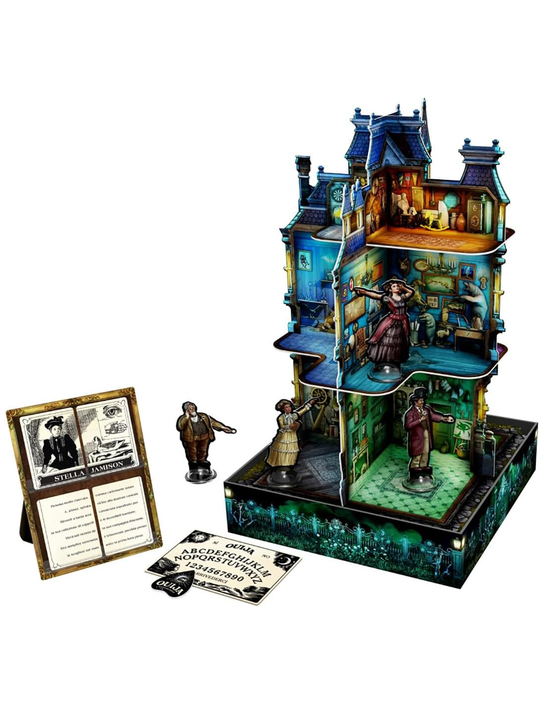 PLAYSET VERTICALE: Maniero facile da montare con uno splendido stile Art Nouveau. I supporti mobili consentono ai giocatori di indicare indizi intelligenti.