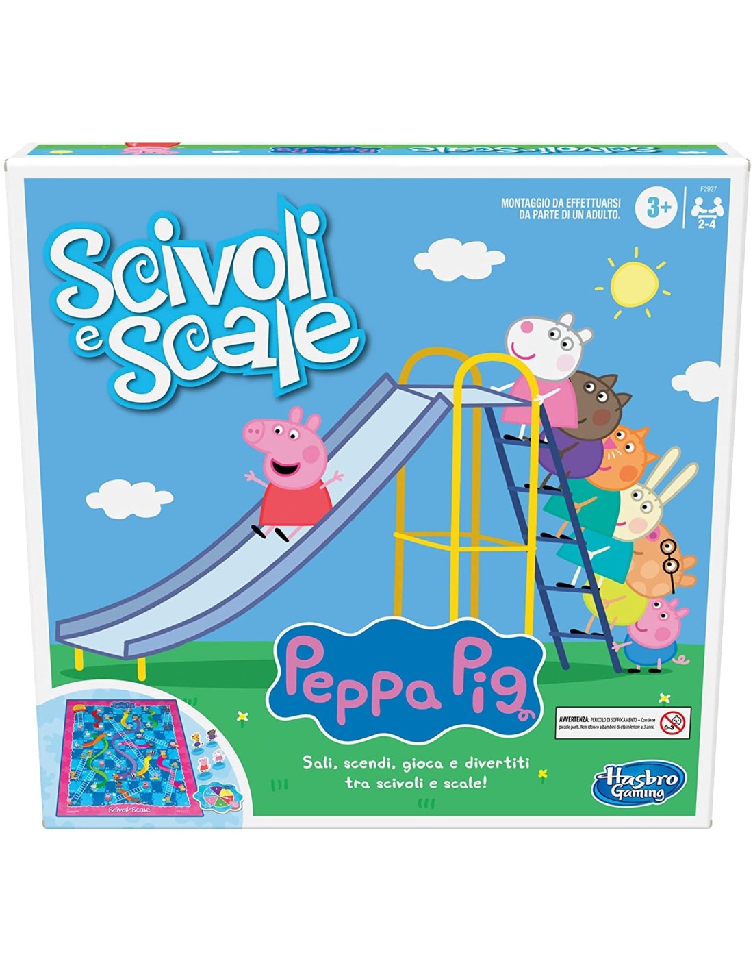 INCLUDE 4 PEDINE DEI PERSONAGGI PEPPA PIG: È un'avventura in salita e discesa al parco giochi mentre i giocatori si spostano lungo il tabellone nei panni di Peppa Pig, Gerald Giraffa, Suzy Pecora o Danny Cane