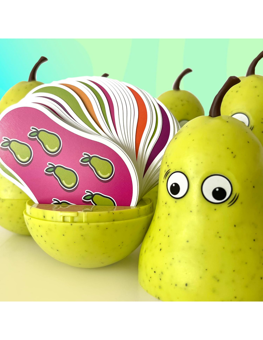 In questo veloce e frenetico gioco a forma di pera, sbarazzatevi delle vostre carte prima che la pera smetta di dondolare! Siate i più veloci ad abbinare le vostre carte con quella al centro, per oggetto, colore o numero! Ma se avete l'abbinamento perfetto, affrettatevi ad afferrare la pera dondolante! Per iniziare la partita, un giocatore dà una spinta alla pera per farla dondolare da una parte all'altra. Poi il giocatore prende 1 carta dal proprio mazzo di pesca e la colloca a faccia in su accanto alla pera per formare il mazzo di gioco. Tutti i giocatori abbinano le carte che hanno in mano alla carta in cima al mazzo di gioco il più velocemente possibile. Si possono fare abbinamenti per colore, per numero o per oggetto. Ogni abbinamento deve essere differente da quello precedente. Età consigliata: 7+ | Numero giocatori: 2-8 | Durata media: 15 Min | Edizione in italiano