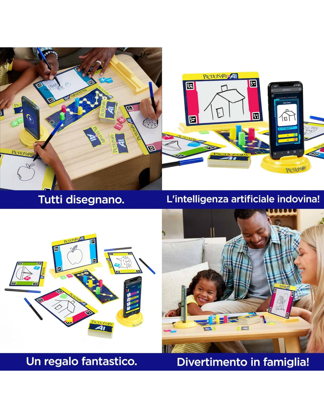 Nuova Era di Divertimento: Pictionary incontra l'IA in questa innovativa versione del classico gioco. I giocatori mettono alla prova le loro abilita' di disegno mentre un'intelligenza artificiale tenta di indovinare le creazioni. Per Tutte le Eta': Serate di gioco rivoluzionate, ideale per giocatori di 8 anni in su. Unisce famiglie e a