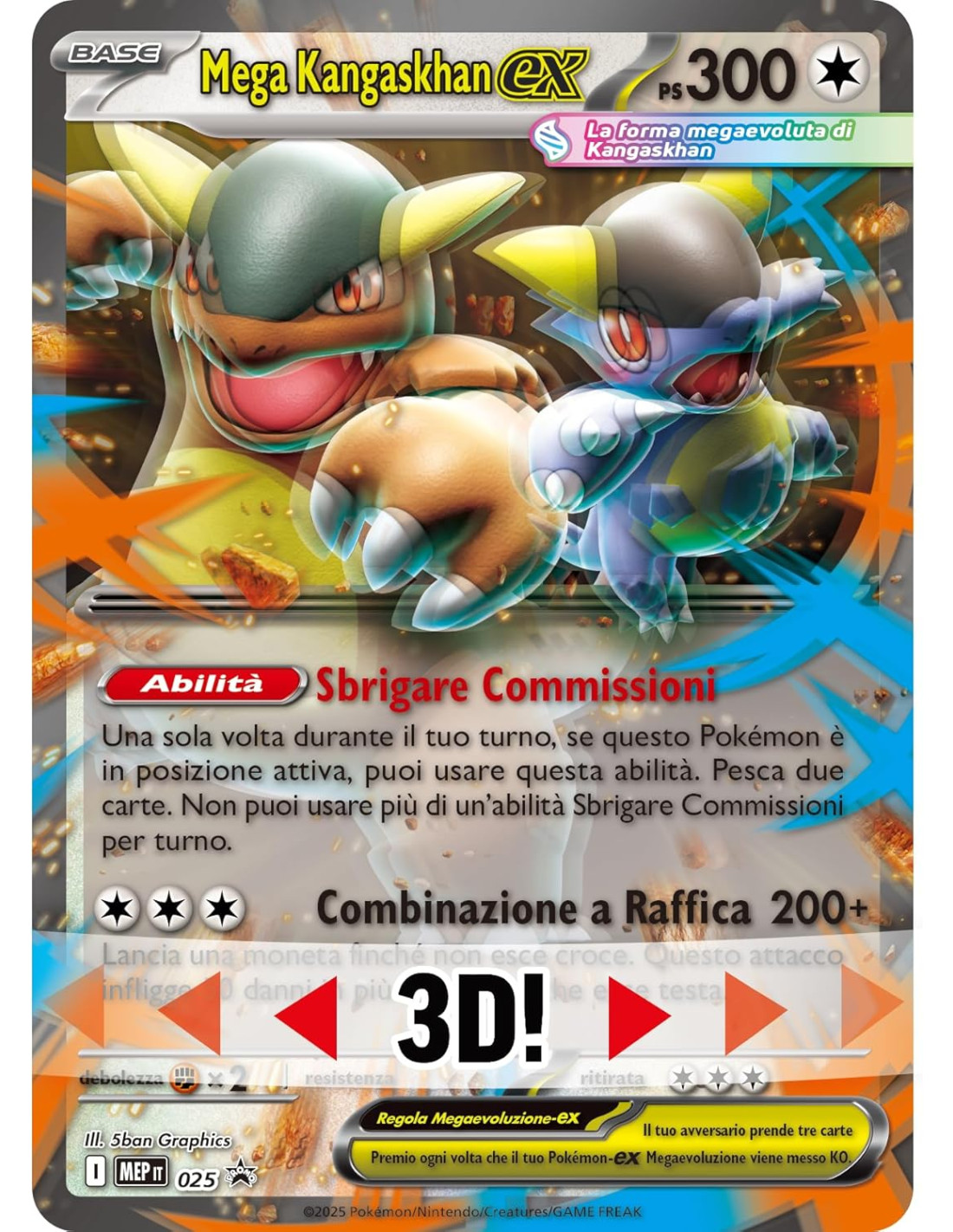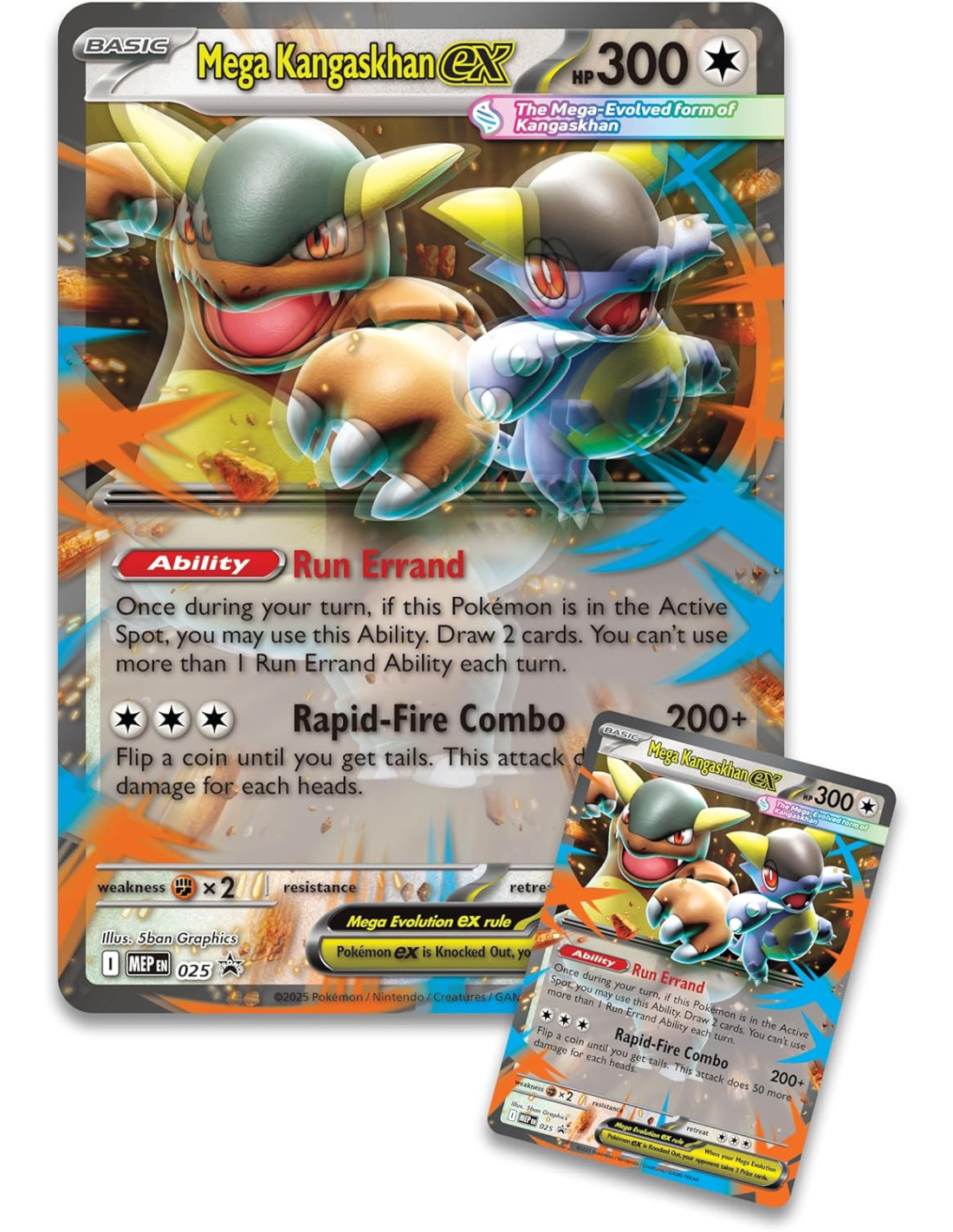 Scatena una Combinazione a Raffica con Mega Kangaskhan-ex! Troverai una carta promozionale olografica pronta da giocare e una carta promozionale lenticolare gigante di Mega Kangaskhan-ex.