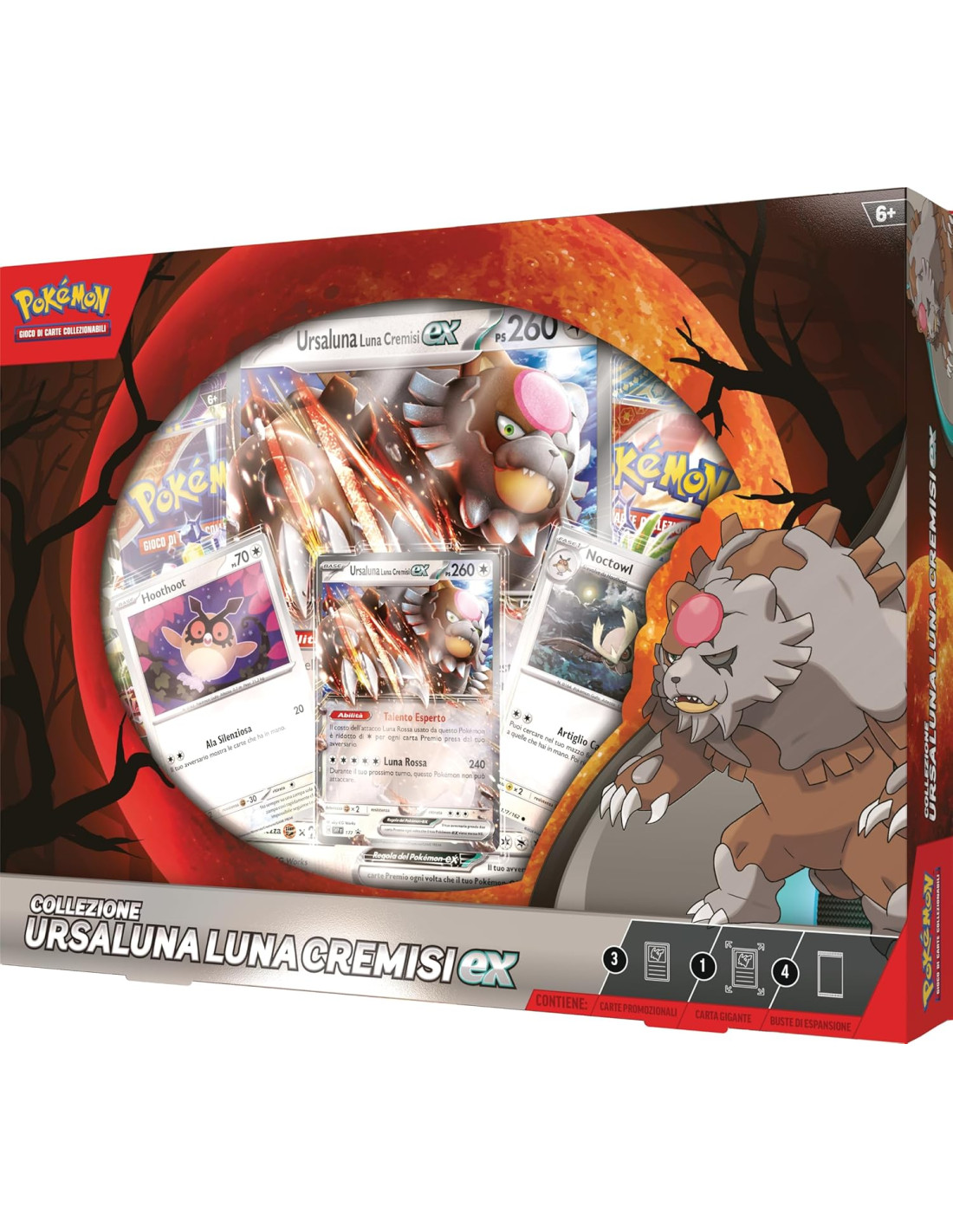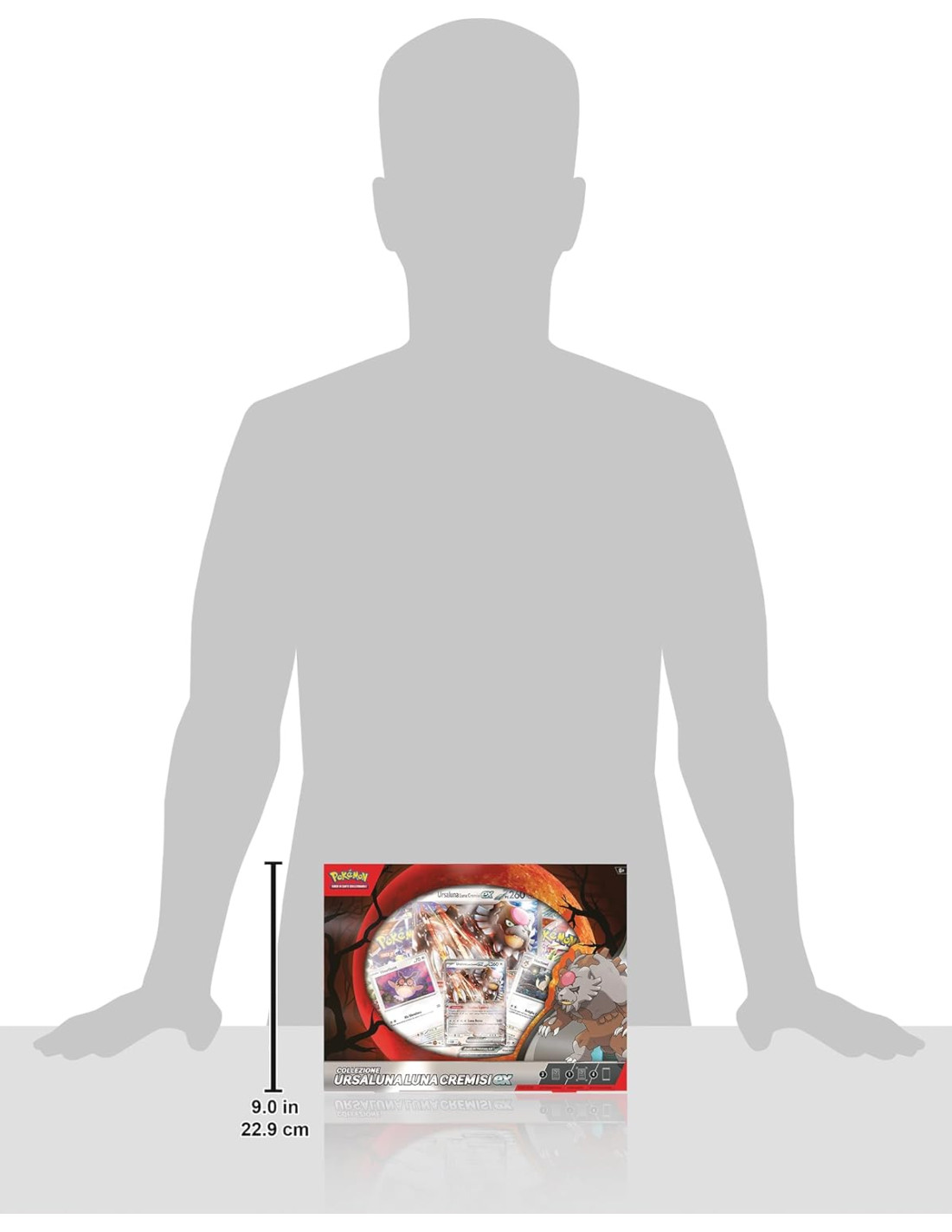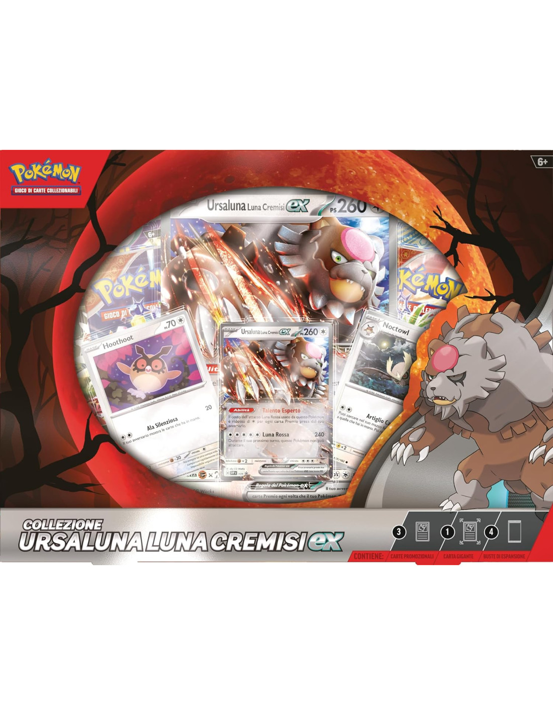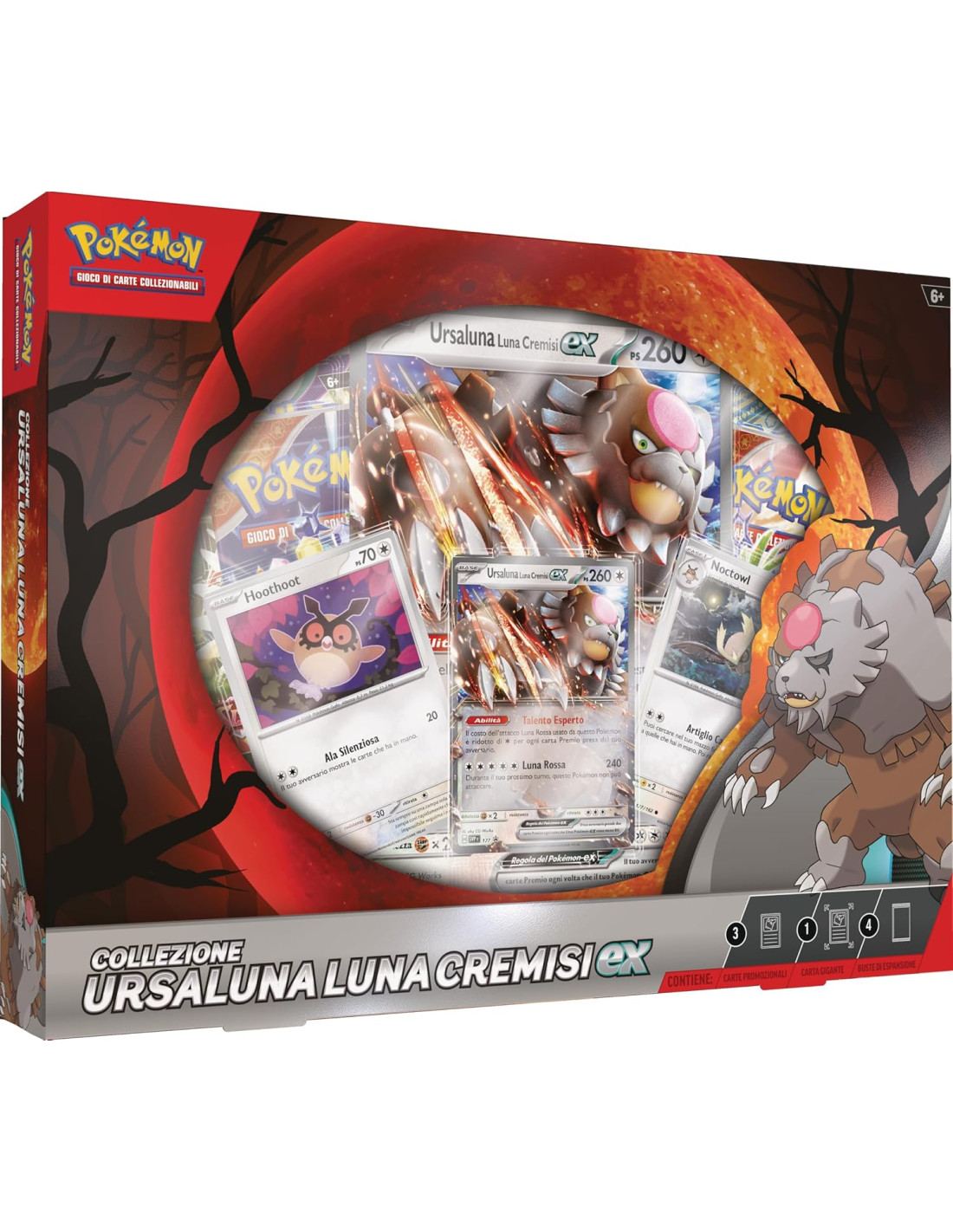 Questa collezione del GCC Pokémon scatena la forza del famigerato Pokémon Ursaluna Luna Cremisi nelle vesti di Pokémon-ex, accompagnato da altri abitanti della notte, Hoothoot e Noctowl. Contiene una carta promozionale olografica di Ursaluna Luna Cremisi-ex, due carte olografiche di Hoothoot e Noctowl nonché una carta olografica gigante di Ursaluna Luna Cremisi-ex! Ti aspettano anche quattro buste di espansione del GCC Pokémon e una carta codice per il GCC Pokémon Live. L'ideale per Allenatori esperti o collezionisti a caccia di avventure. Edizione in Italiano.