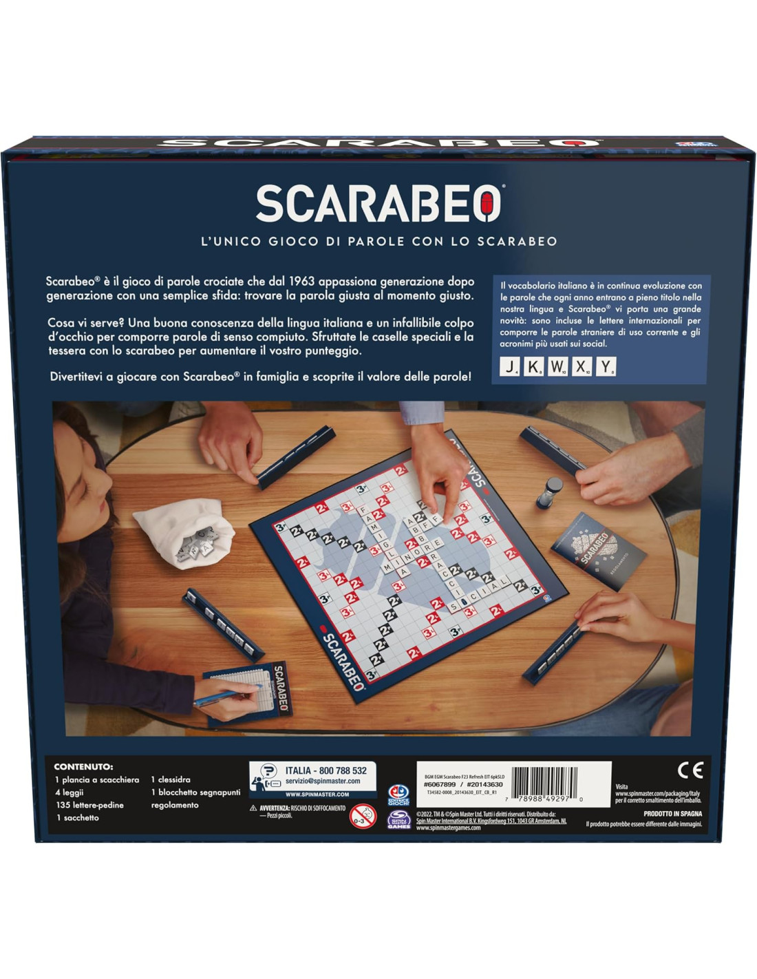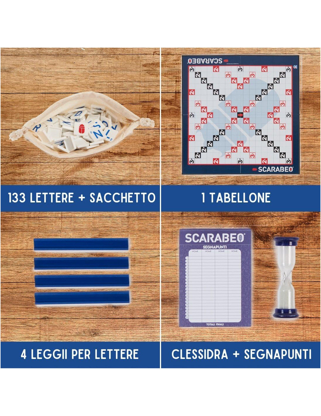 GIOCO DA TAVOLA DI PAROLE: Usa le tessere raffiguranti le lettere dell'alfabeto per comporre parole sulla plancia, verifica e segna il tuo punteggio. A Scarabeo vince il giocatore con il maggior numero di punti una volta terminate tutte le tessere a disposizione