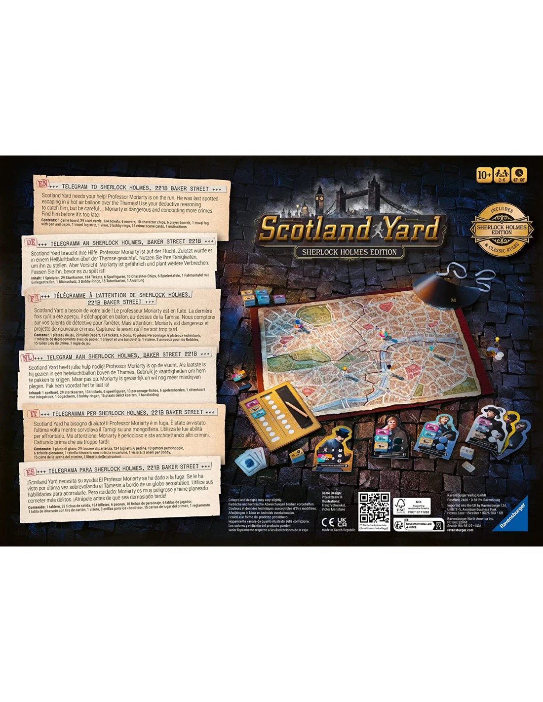 Da 2 a 6 giocatori Dagli 8 anni in su Vivete un'esperienza di gioco immersiva con illustrazioni ispirate alla saga di Sherlock Holmes