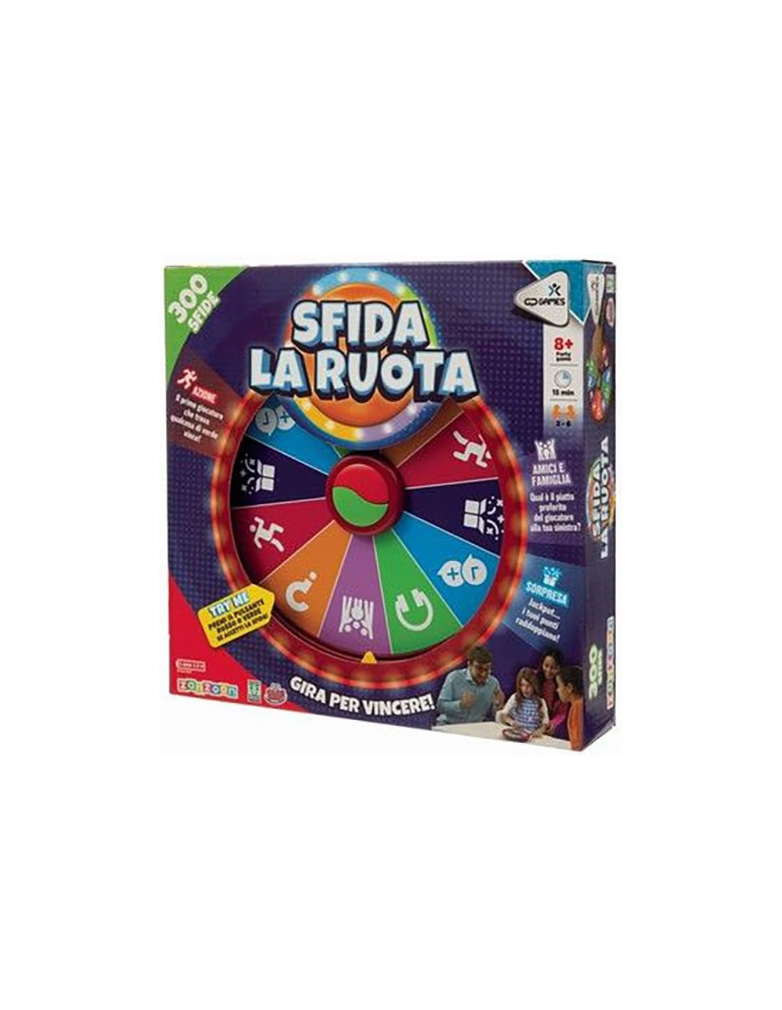 Sfida la Ruota e prova a battere i tuoi amici vincendo più challenge possibili! Tante categorie di sfida diverse: Indovinelli, Quiz sonori, Vero o Falso, Amici e Famiglia, Azione e Sorpresa. Il presentatore del gioco si occuperà di tutto! Dovrete pensare solo a divertirvi, il gioco elettronico terrà i punti, scherzerà e vi proporrà tante sfide esilaranti. Dovrete solo girare la ruota!