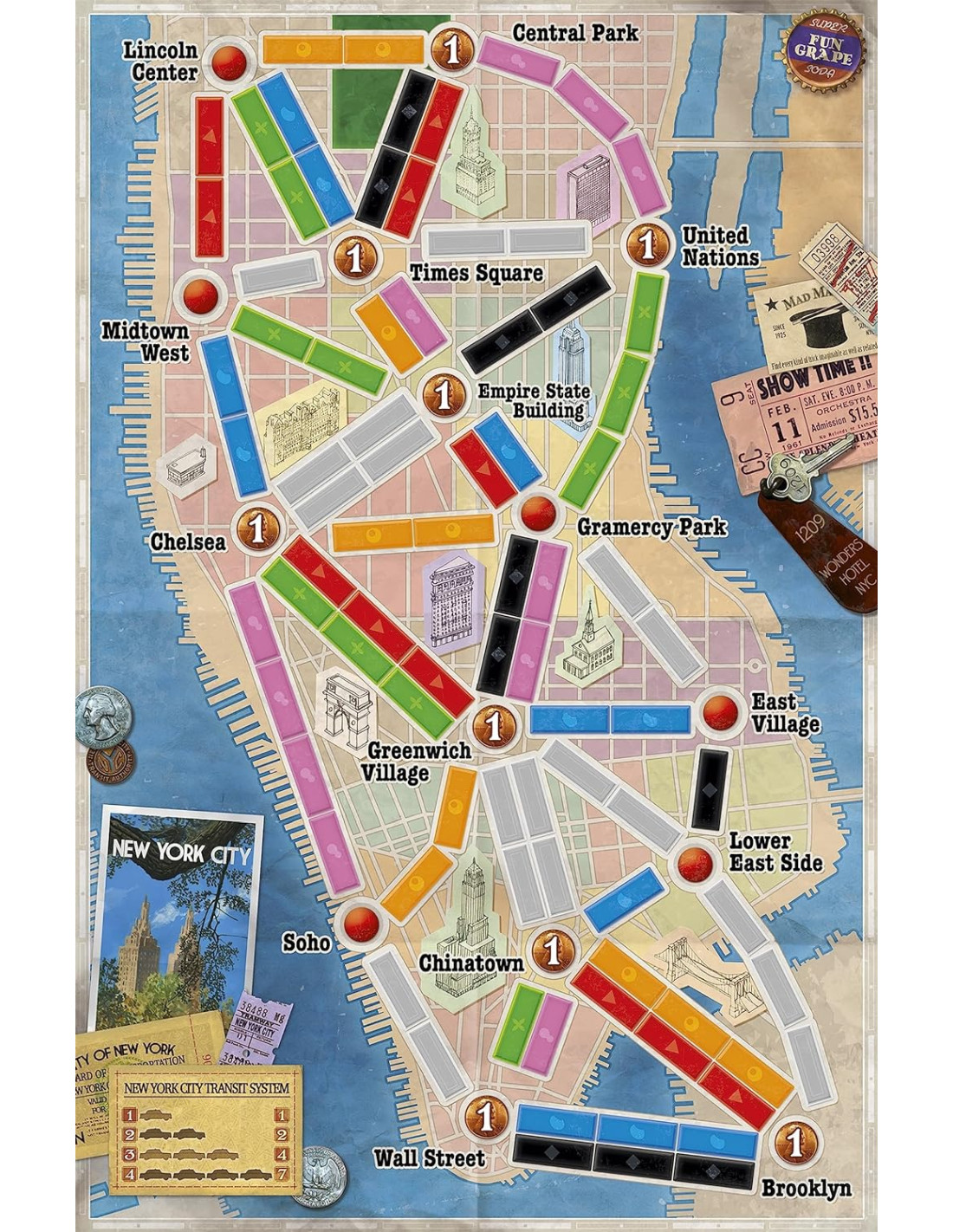 Benvenuti negli anni '60. Ammirate il panorama mozzafiato dall'empire state building, il grattacielo più alto del mondo, oppure concedetevi una passeggiata attraverso il magnifico central park. Fate un bel giro turistico, da times square fino a brooklyn, e divertitevi. In questa frenetica versione di ticket to ride i giocatori si sfidano l'un l'altro attraverso le affollate vie di new york, per visitare le più prestigiose attrazioni turistiche e completare i loro biglietti destinazione. Con una meccanica semplice ed elegante, ticket to ride saprà attrarre sia i principianti che i giocatori più esperti. Impara a giocare in 3 minuti, giocaci per ore. Non adatto a bambini di età inferiore a 36 mesi. -Semplicità ed eleganza tipiche di ticket to ride -Portabilità : il tabellone ridotto occupa poco spazio così da poter giocare anche in treno! -Partite veloci che lo rendono un ottimo introduttivo Semplicità ed eleganza tipiche di ticket to ride Portabilità : il tabellone ridotto occupa poco spazio così da poter giocare anche in treno! Partite veloci che lo rendono un ottimo introduttivo
