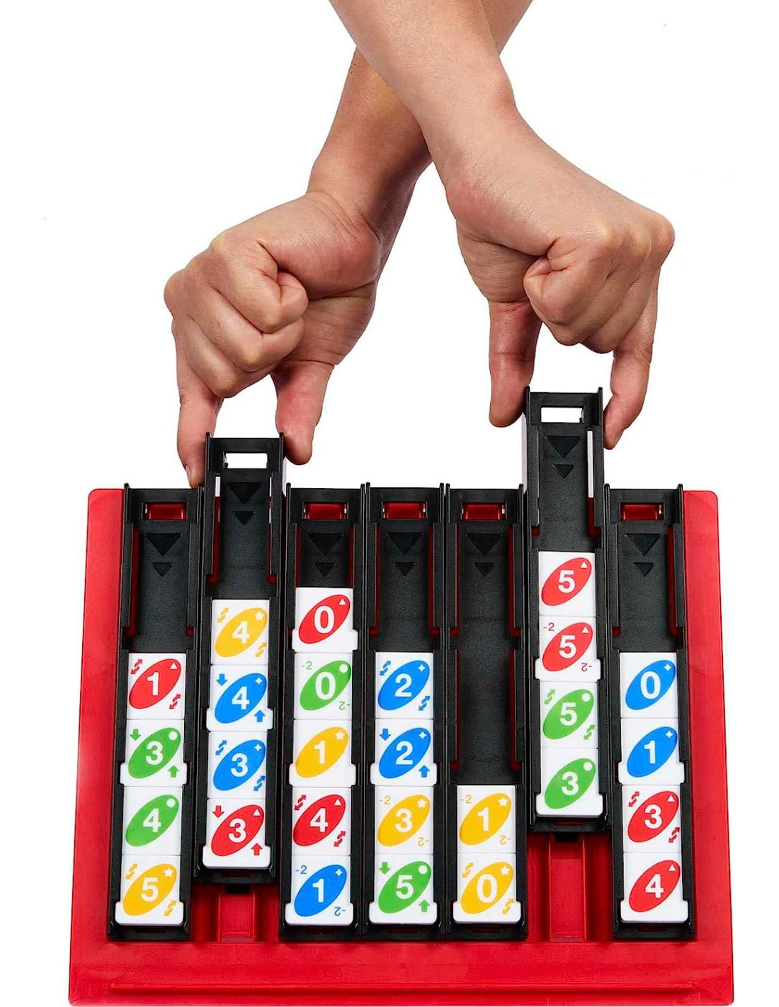 Combina l'abilità di abbinare il colore o il numero alla sfida di posizionare quattro tessere in fila La base e le tessere in plastica rendono il gioco resistente e semplice da trasportare Le tessere Azione permettono di scambiare due colonne, spingere una tessera fuori dalla colonna od obbligare un altro giocatore a giocare il proprio turno con 2 tessere in meno È possibile posizionare quattro tessere in fila in diagonale, verticale o orizzontale Sono stati aggiunti simboli grafici speciali per aiutare i giocatori daltonici a identificare il colore delle tessere