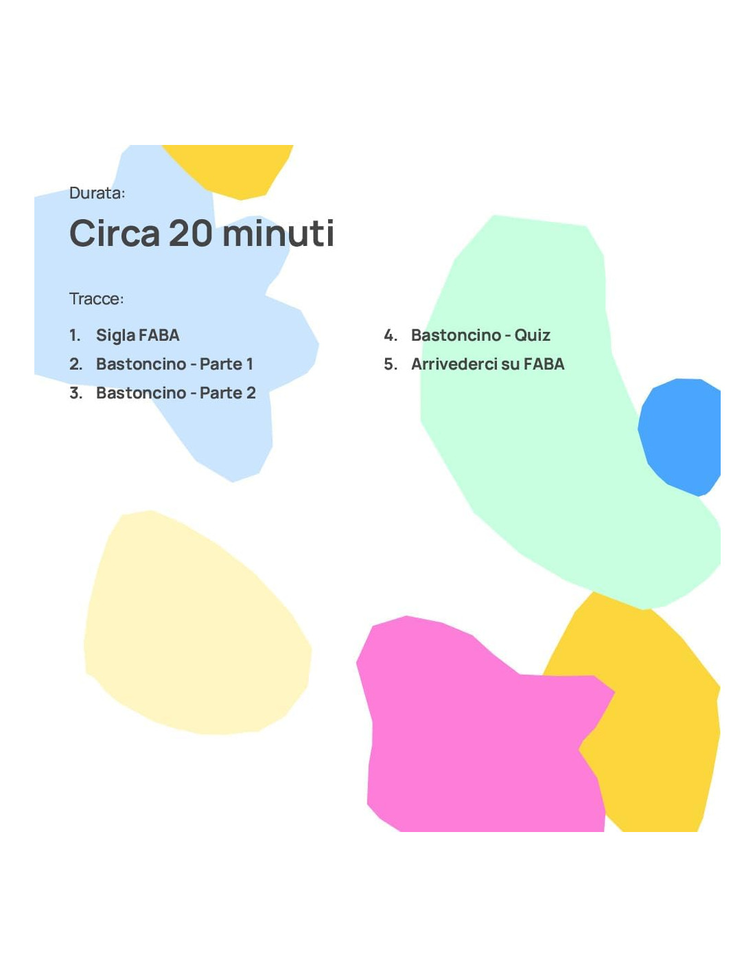BASTONCINO: Per chi adora i racconti di Julia Donaldson, una storia sonora dedicata a Bastoncino, perfetta da ascoltare anche durante il periodo natalizio. Alla fine, alcune domande per stimolare una migliore comprensione del testo e un'attività creativa. Bastoncino è il protagonista di un incredibile e inaspettato viaggio che lo terrà separato dai suoi affetti. Il giorno di Natale, dopo innumerevoli peripezie e grazie a un aiutante davvero speciale, potrà riabbracciare la sua famiglia.