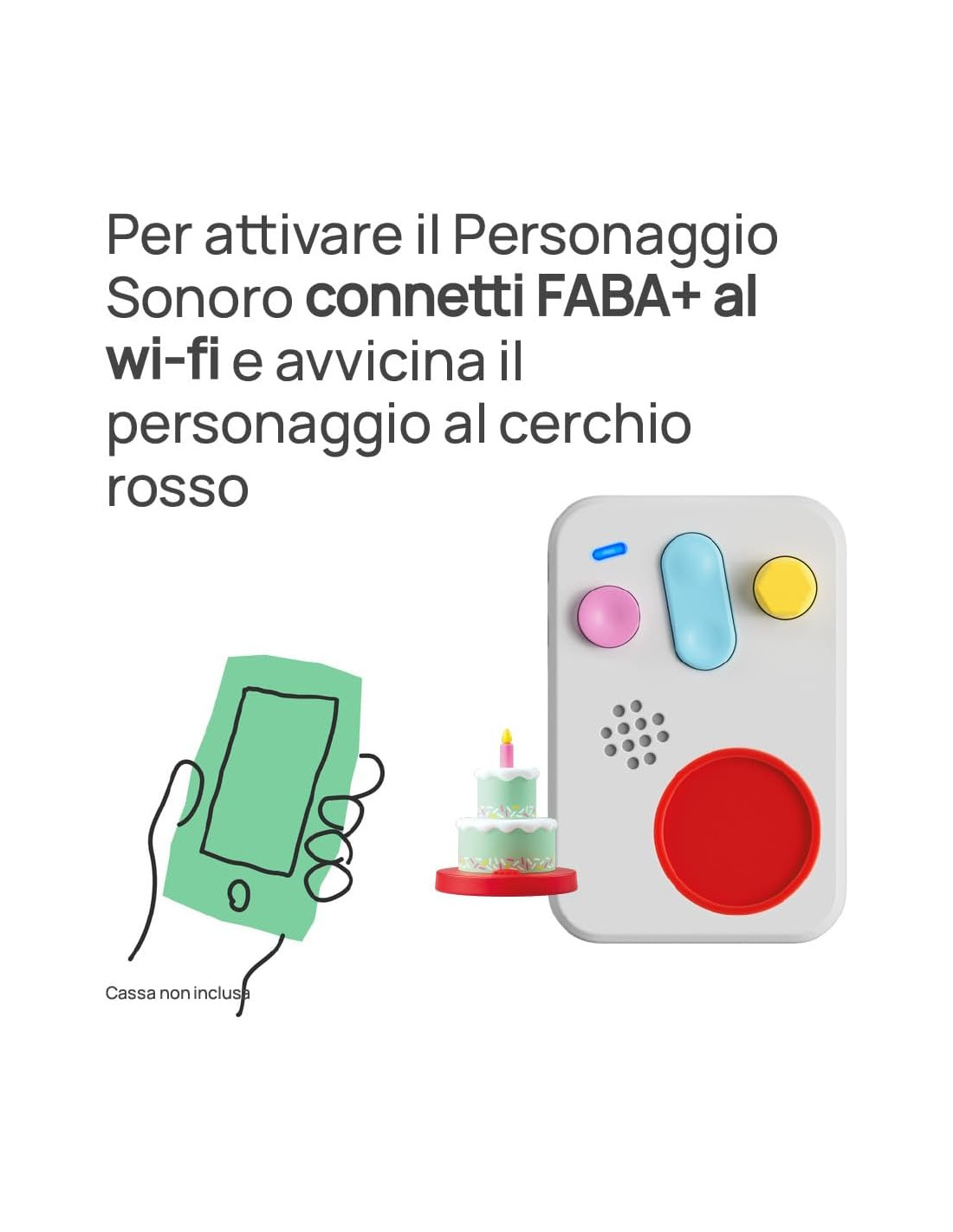 PERSONAGGIO SONORO da posizionare su FABA Raccontastorie o su FABA+ grazie al quale bambini e bambine possono ascoltare in autonomia storie, canzoni e filastrocche