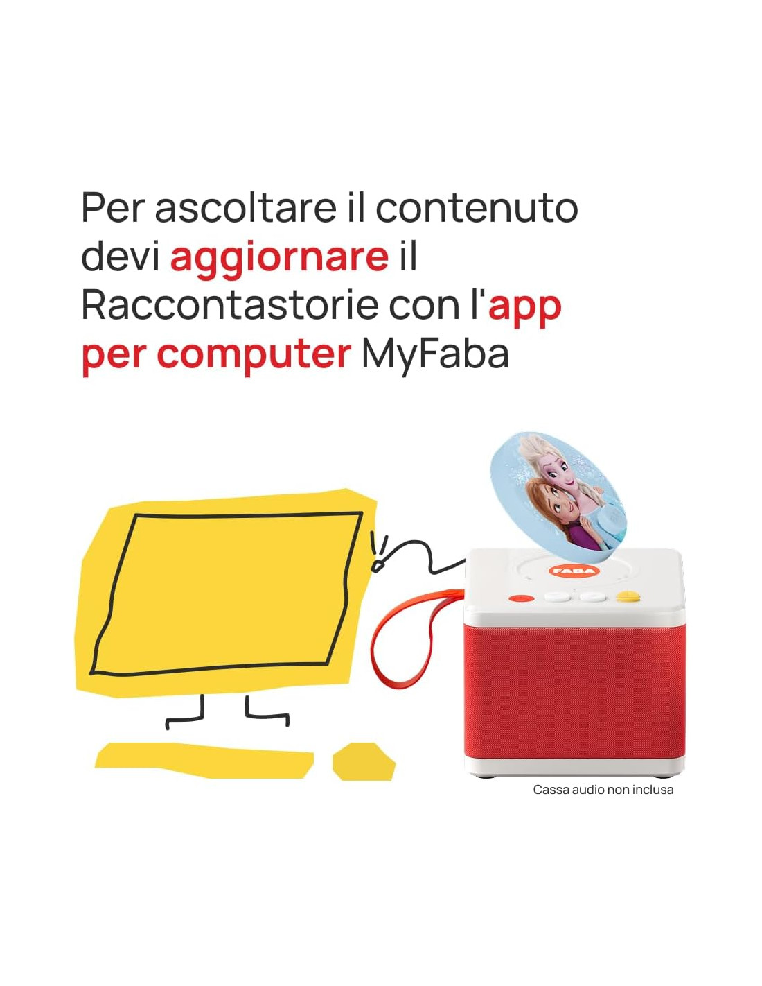 COMPATIBILITÀ: compatibile con entrambi i Raccontastorie FABA. Il Raccontastorie non è incluso. Per ascoltare il contenuto, se hai FABA Raccontastorie aggiornalo con l'app per computer MyFaba, se hai FABA+ connettiti al Wi-Fi.