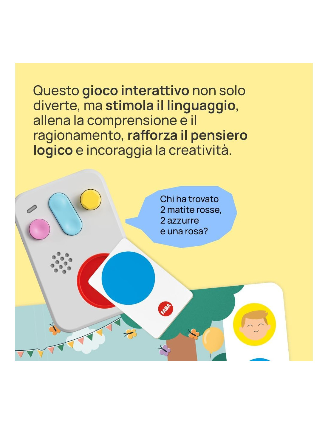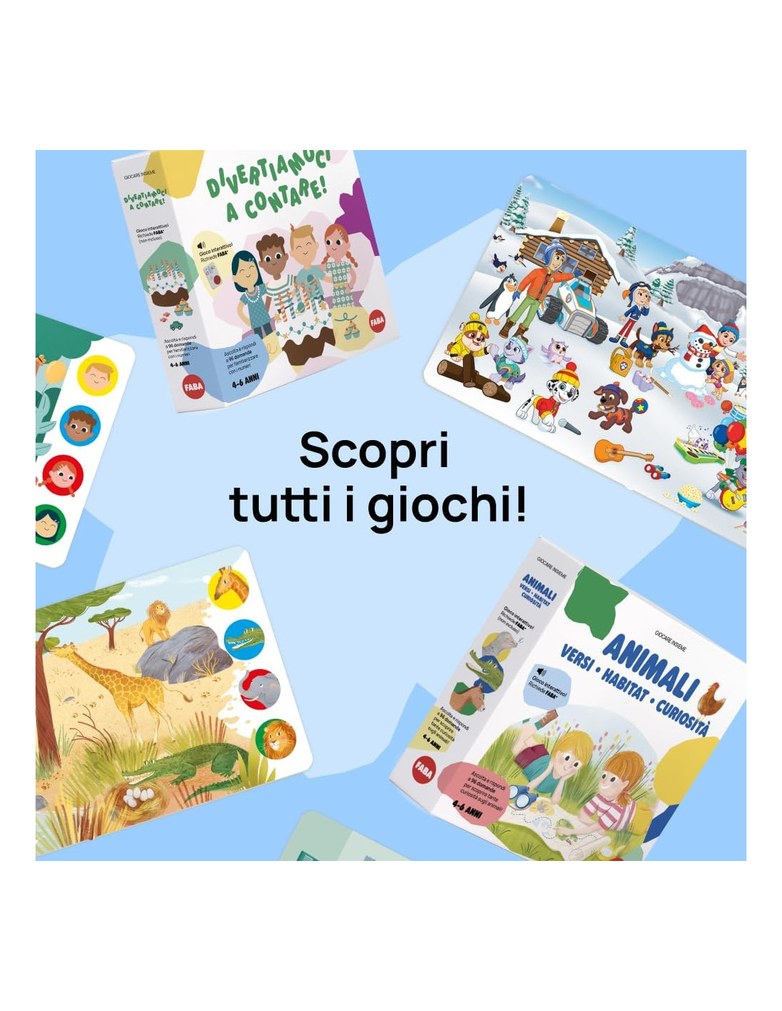 DIVERTIAMOCI A CONTARE! Alla festa di compleanno di Luca sarà divertente scoprire il bottino della caccia al tesoro, contare i regali ricevuti e osservare i ricchi scenari alla ricerca della soluzione. COMPATIBILITÀ: richiede FABA+ e l'ultimo aggiornamento del firmware disponibile in app