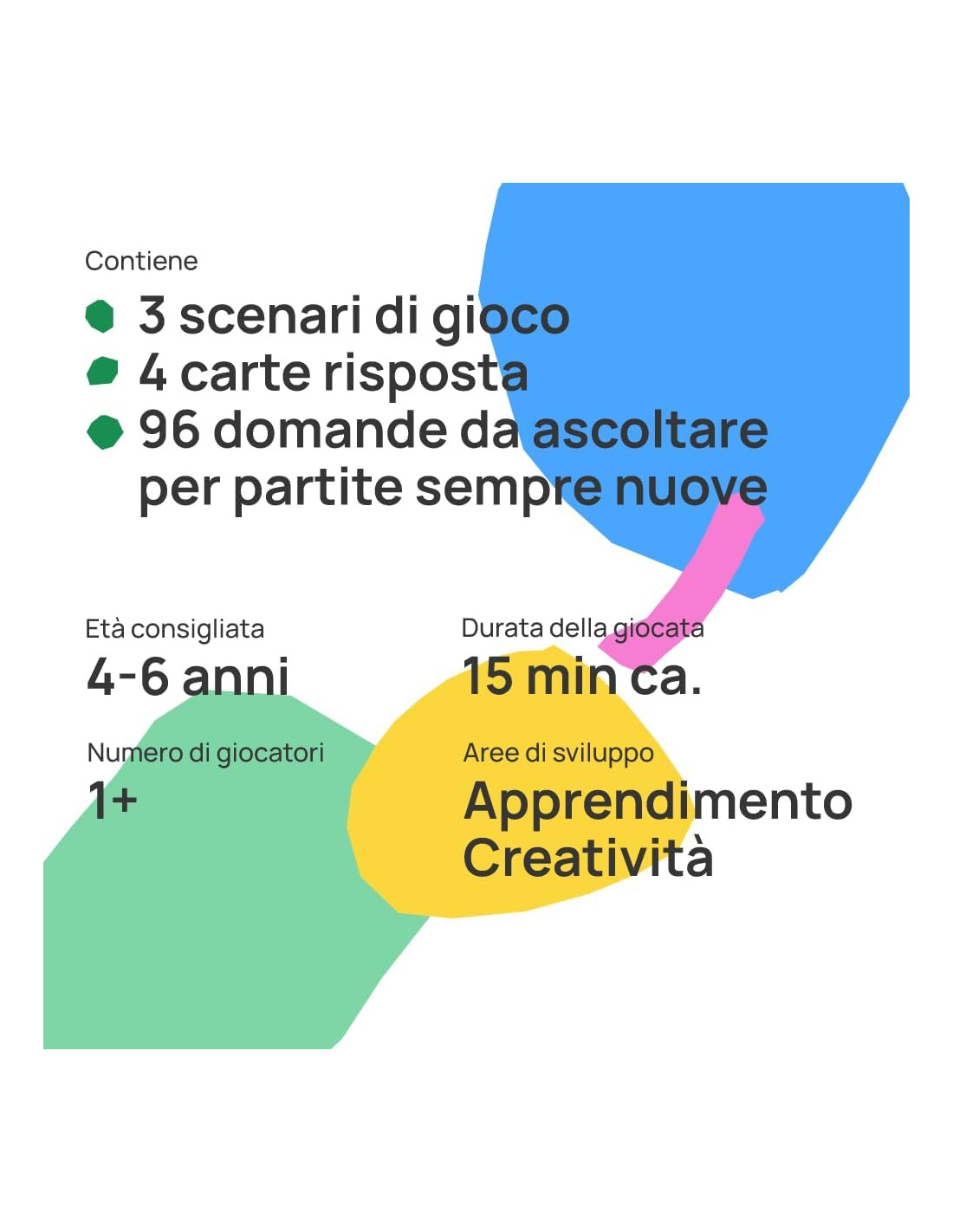 ETÀ CONSIGLIATA : 4-6 anni. 1+ giocatori. AREE DI SVILUPPO: Apprendimento, Creatività DURATA: Circa 15 minuti per partita,