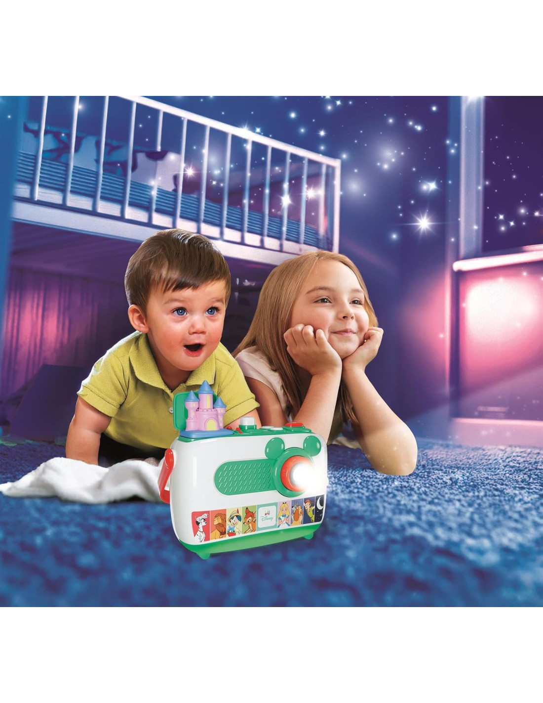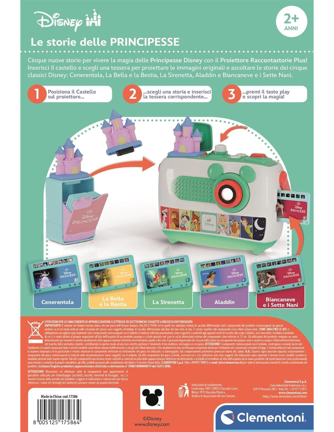 COME GIOCARE: inserendo la diapositiva preferita nel vano sul retro, è possibile proiettare le storie Disney più amate e famose; con due modalità di uso: ascolta la storia con sottofondo musicale ola voce racconta ogni scena proiettata