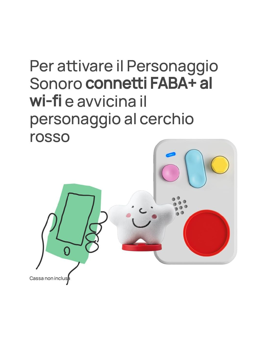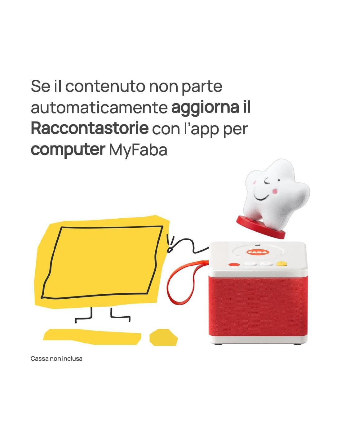 COMPATIBILITA': compatibile con entrambi i Raccontastorie FABA. Il Raccontastorie non è incluso. Per ascoltare il contenuto, se hai FABA Raccontastorie aggiornalo con l'app per computer MyFaba, se hai FABA+ connettiti al Wi-Fi ETÀ