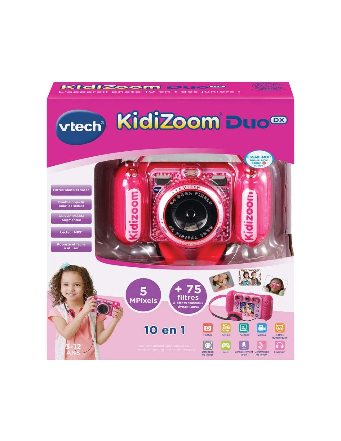 Vtech - Kidizoom Duo DX Rosa - La fotocamera per ragazzi con doppia lente, filtri dinamici, giochi e realtà aumentata!