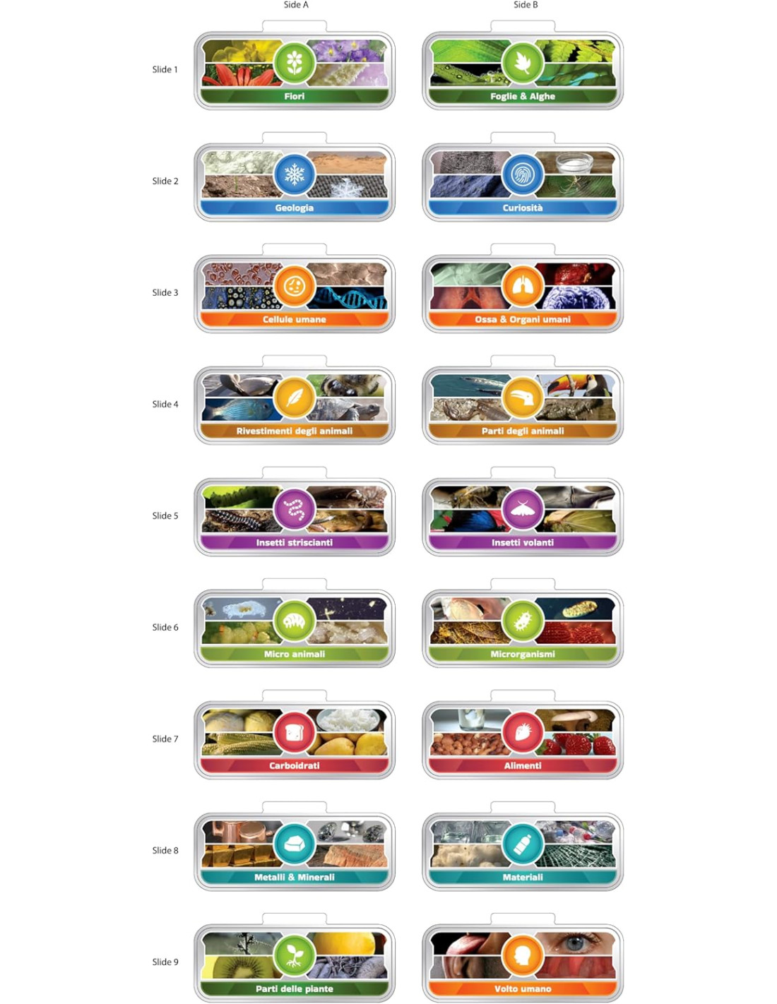 CONTENUTI ORIGINALI BBC: sono inclusi all'interno del kit 9 vetrini illustrati con 18 categorie, oltre 70 video originali BBC in italiano, 144 immagini e 432 informazioni scientifiche