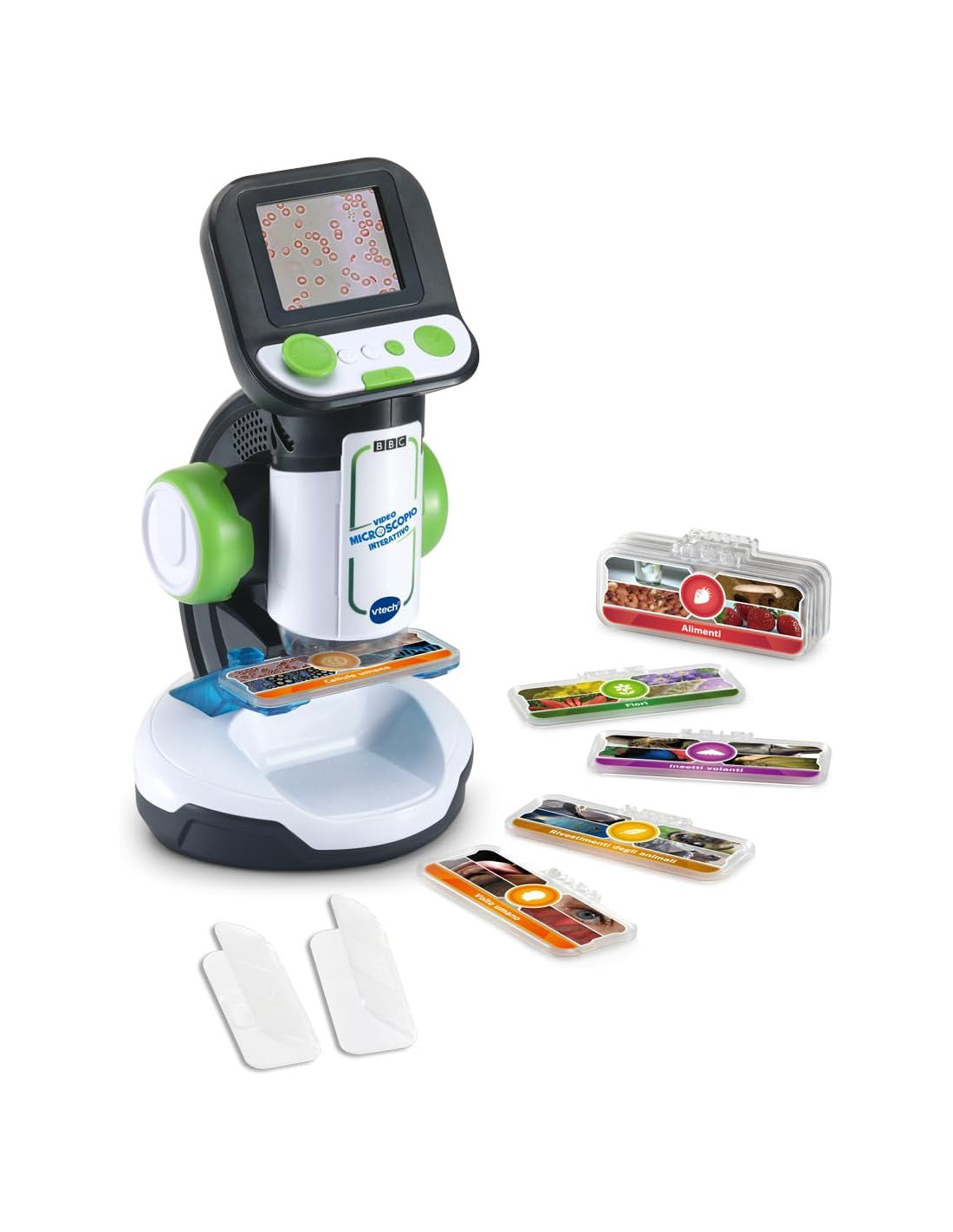 VTech Video Microscopio Interattivo, Microscopio Bambini Digitale con Video Originali BBC, Schermo 2,4", Zoom 200x, 9 Vetrini Illustrati, Slot MicroSD, Lingua Italiana, Batterie Incluse, 7-99 Anni