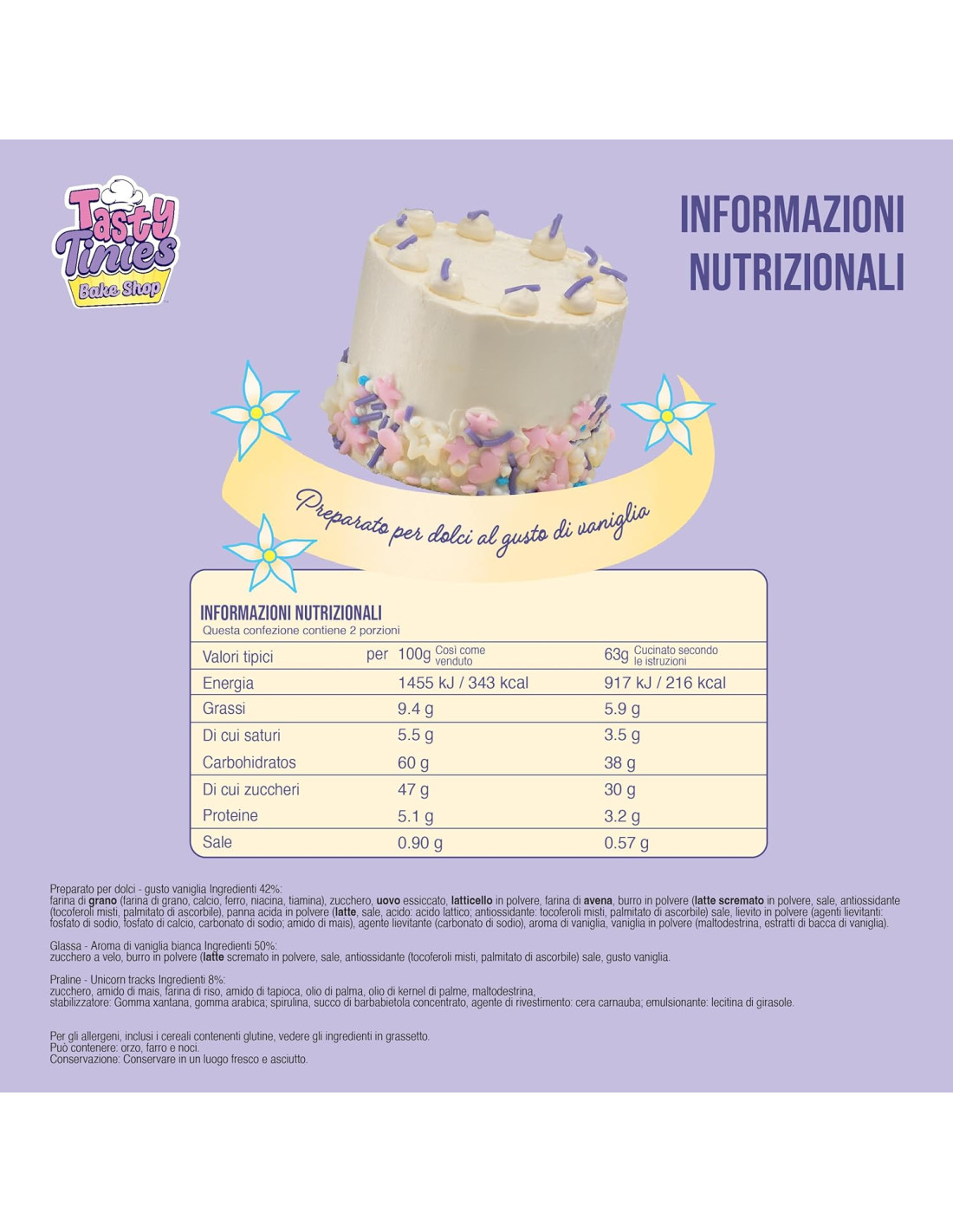 KIT MINI PASTICCERIA: regalate ai vostri bambini un'emozionante esperienza culinaria con Tasty Tinies. Ogni kit contiene tutto il necessario per creare deliziosi pasticcini in miniatura in pochi semplici passaggi. CUCINA PER BAMBINI A PARTIRE DA 6 ANNI: facile da realizzare in soli 5 passaggi, questa divertente cucina è perfetta per i bambini a partire da 6 anni. Mescolate, versate, cuocete nel microonde per 25 secondi, decorate e divertitevi! KIT CREATIVO COMPLETO: Il nostro kit di pasticceria include tutto il necessario per creare 2 torte completamente decorate, dagli impasti per torte alle decorazioni colorate, oltre a mini utensili e accessori coordinati DIVERSI GUSTI: Scegliete tra i nostri diversi kit di pasticceria, con gusti invitanti come vaniglia, cioccolato o fragola. Perché non provarli tutti? Offrite ai vostri bambini un'esperienza di gusto variegata IDEA REGALO PER IL COMPLEANNO: questi kit di pasticceria creativa sono perfetti come regalo di compleanno o di Natale per i bambini dai 6 anni in su. Organizzate un'attività di compleanno divertente e lasciate che i bambini creino e godano dei loro capolavori culinari.