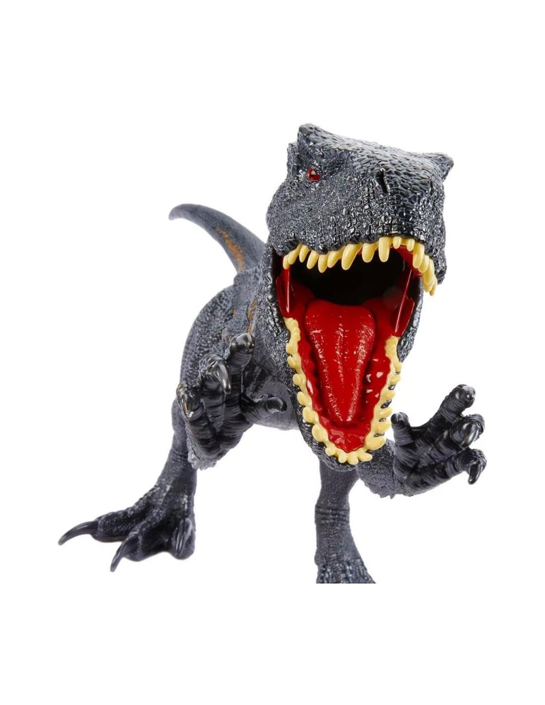 Design feroce! Questo dinosauro cattivo di Jurassic World: Il Regno Distrutto ha un design con pericolosissimi artigli, denti sovrapposti e minacciosi occhi rossi.