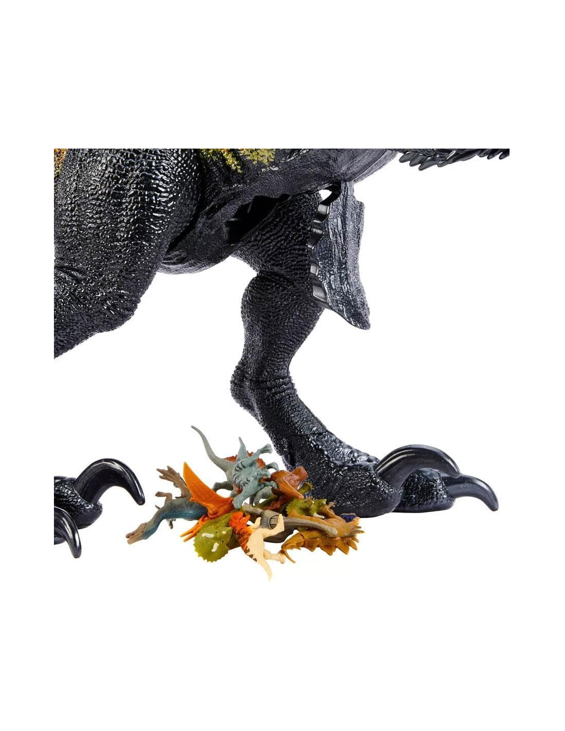Istinti animali! I bambini possono sfamare il loro appetito aggressivo con questo indoraptor che può trangugiare fino a 20 mini action figure per intero attraverso le sue fauci spalancate! Mini personaggi in vendita separatamente, secondo disponibilità.