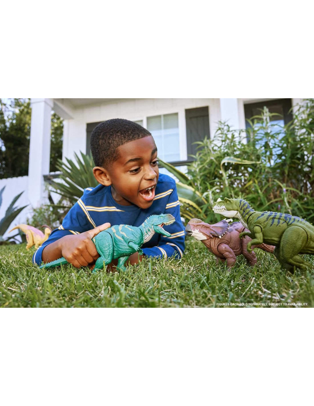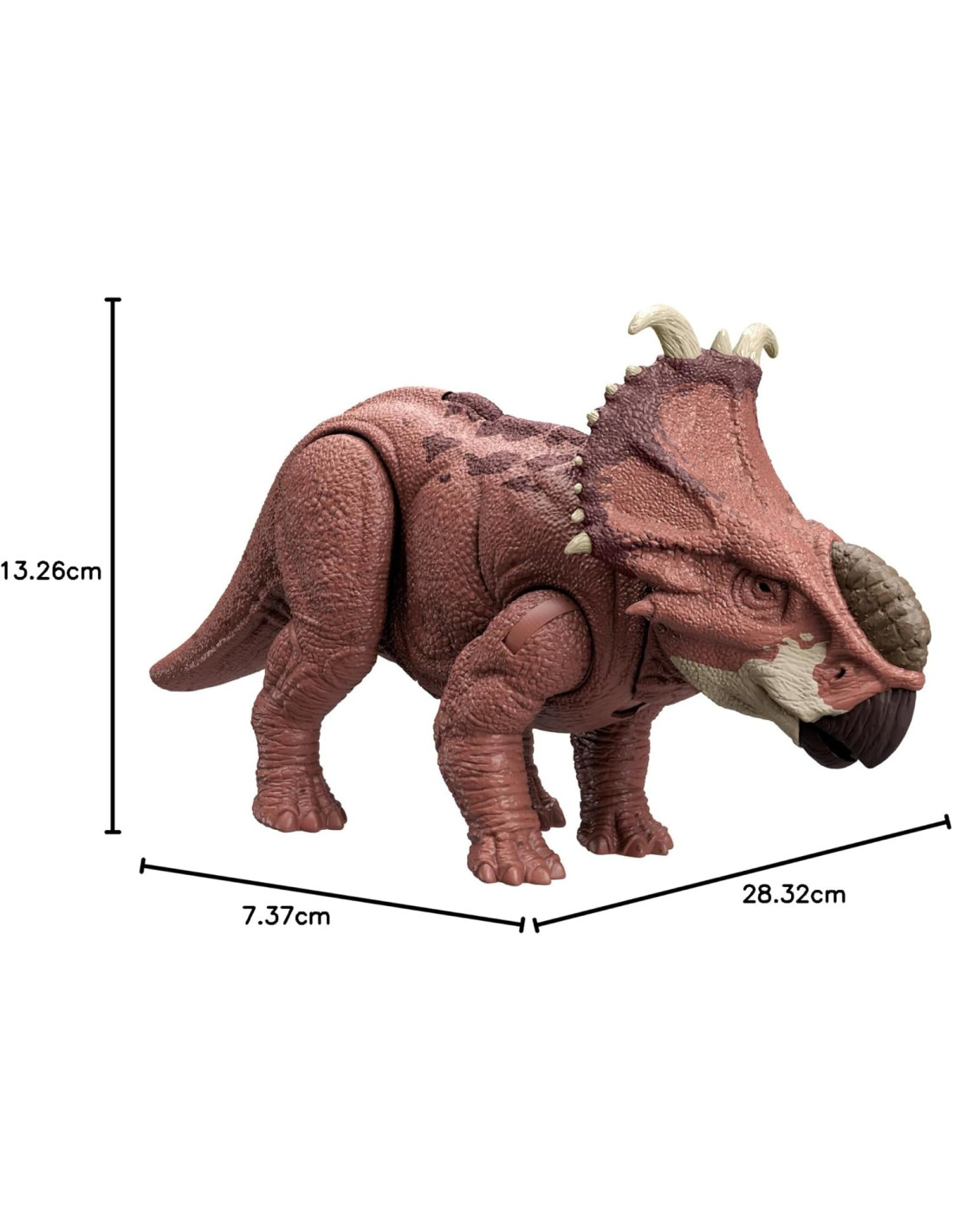 Attacco furioso e ruggito! Questo Pachyrhinosauro Ruggito Selvaggio è in grado di sferrare un furioso attacco con colpo di testa doppio, accompagnato da un ruggito feroce per un'azione di gioco emozionante!