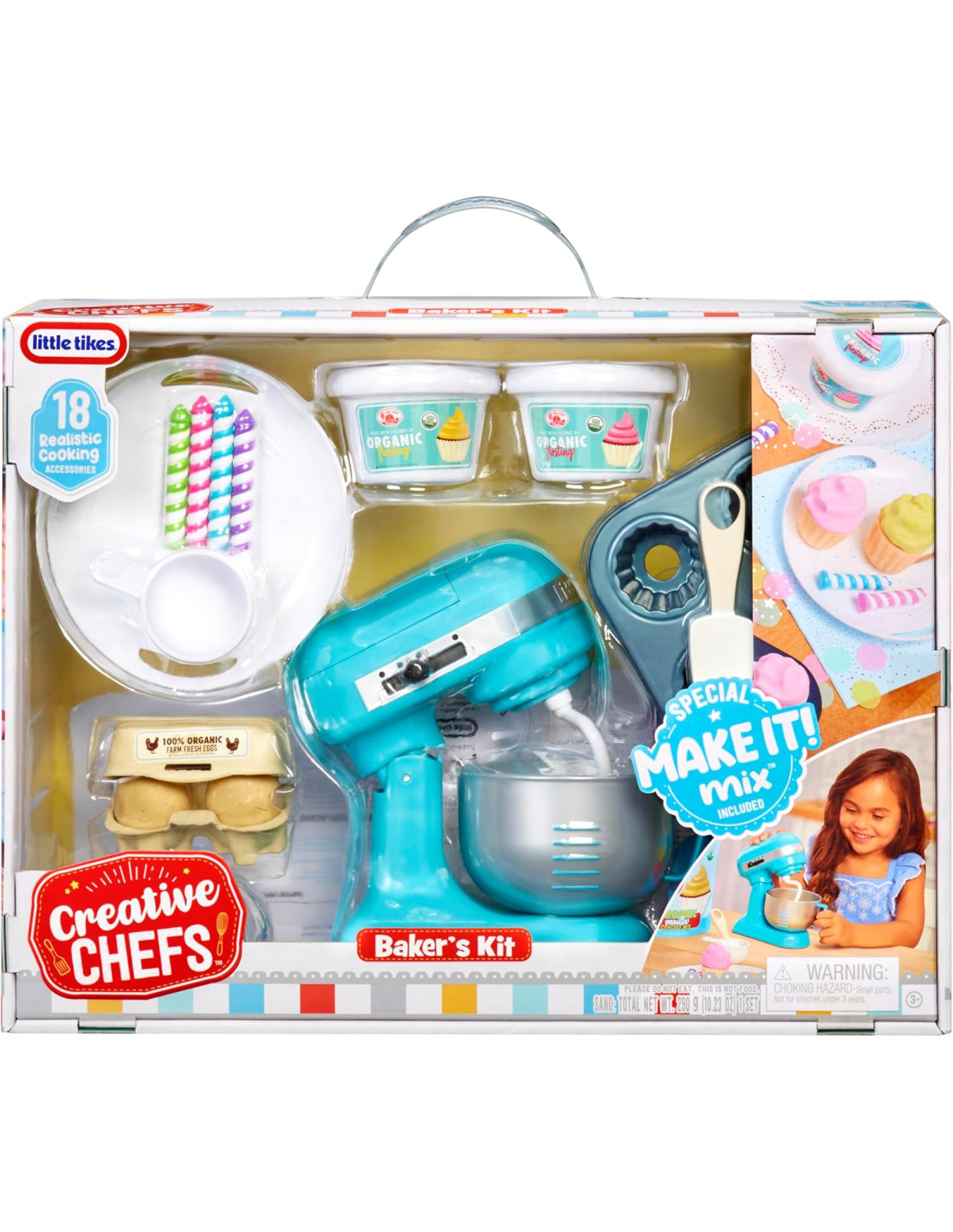 SET DA GIOCO IPERDETTAGLIATO: L'impastatrice, gli utensili e gli ingredienti assomigliano a quelli veri, così i bambini possono immaginarsi come veri pasticceri e apprendere le basi della preparazione delle tortine SCHEDA DI RICETTA DETTAGLIATA: Questo kit include una scheda di ricette di facile lettura per i piccoli pasticceri che possono imparare e seguire le istruzioni visive