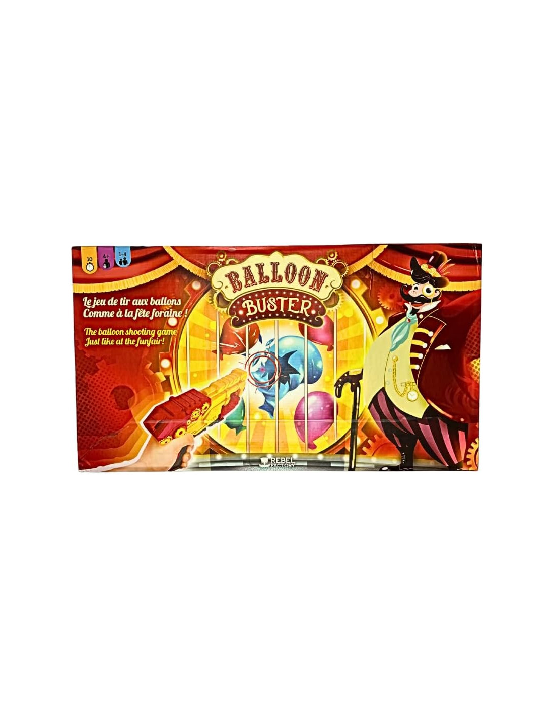 Il gioco che vi farà vedere in tutti i colori! Trova questo famoso gioco di tiro con i palloncini a casa tua! I palloncini sono bersagli su cui il giocatore spara, ma attenzione! Il compito non è facile per scoppiare questi palloncini! Sarà necessario essere precisi nei vostri scatti! "Waouh, l'ho preso! "Oh no, mi sono perso l'ultimo! Le emozioni sono sempre così forti durante una partita di tiro con i palloncini. 1,2,3 Pronto? Spara. …… Due modalità di gioco: Solo o Squadra Questo gioco può giocare a 2, 3 o 4 giocatori per una partita di circa 10 minuti