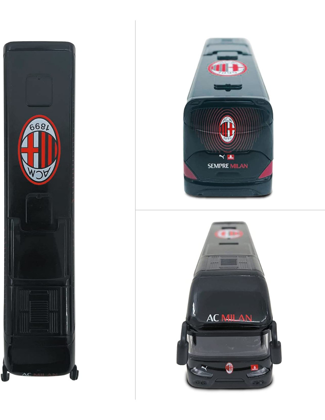 Design ufficiale A.C Milan - prodotto ufficiale marchiato A.C. milan Replica fedele all'originale - replica in scala, identica all'originale dai dettagli ben rifiniti; riproduzione del bus che trasporta la squadra del Milan negli stadi di tutta italia