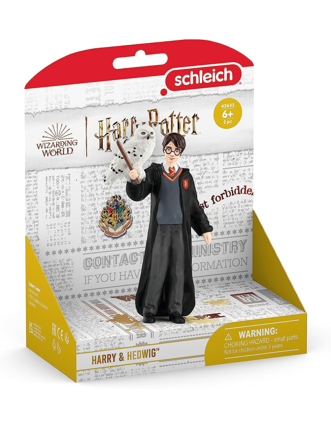 Lo studente di magia Harry Potter indossa la sua uniforme scolastica di Grifondoro, la sua bacchetta e i suoi iconici occhiali. È accompagnato dal suo eternamente fedele gufo delle nevi Edvige. Questo set di due personaggi di Schleich fa parte della serie Wizarding World, che include personaggi del mondo di Harry Potter.