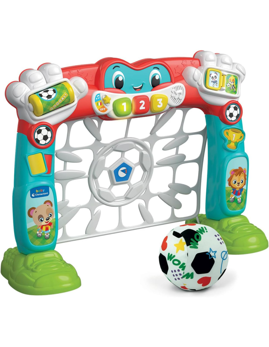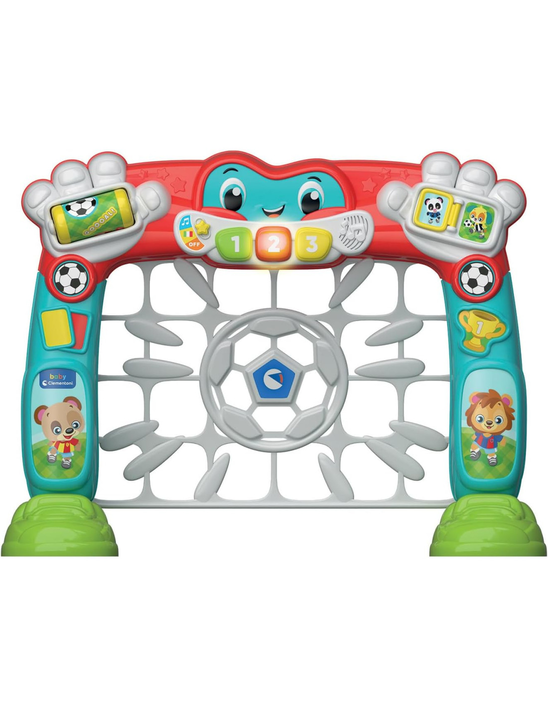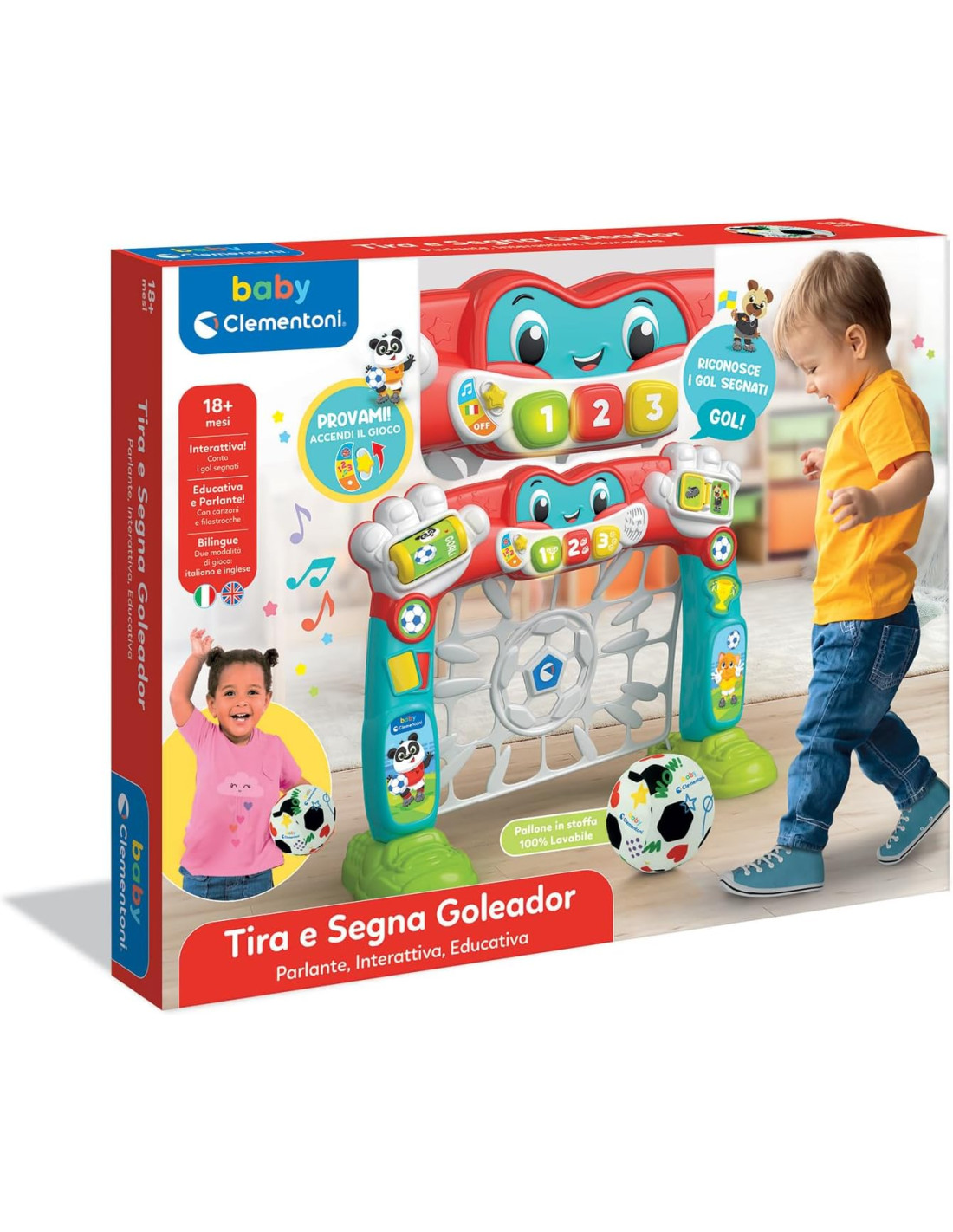 Clementoni- Baby Tira e Segna Goleador-Porta Calcio Pallone, Centro attività Parlante, Gioco Educativo e Interattivo (in Italiano e Inglese), Bambini 18 Mesi, Insegna i Numeri, 17954, Multicolore
