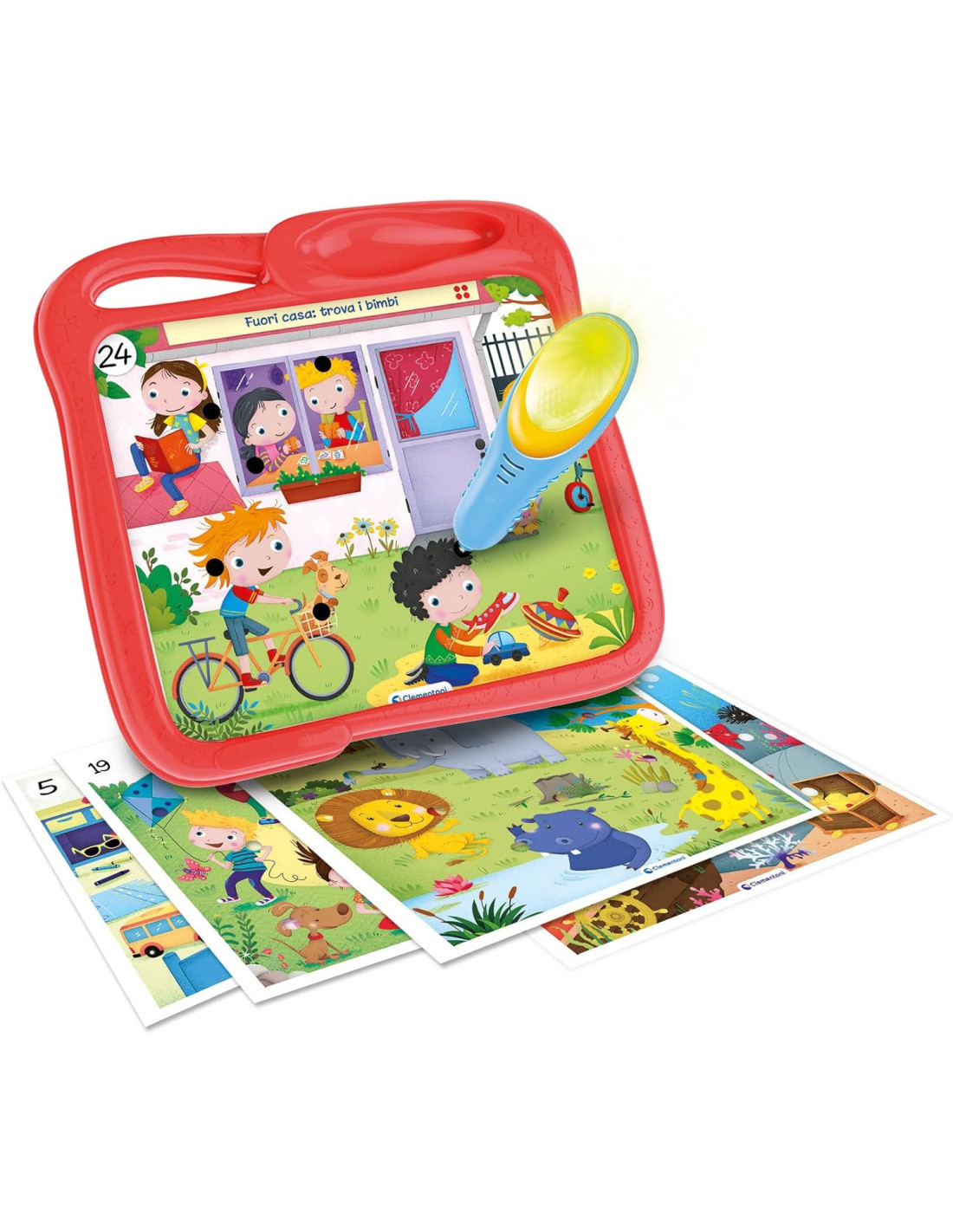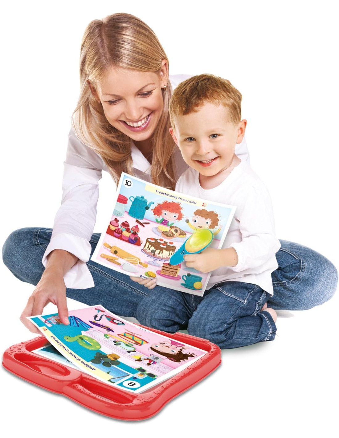 Un divertente gioco a quiz progettato per i bambini a partire dai 2 anni. Il programma di schede educative è realizzato con illustrazioni chiare e semplici, pensate per aiutarli a svolgere le prime associazioni logiche. Il banchetto è dotato di maniglia e di un pratico vano porta schede. La penna ergonomica e interattiva aiuta il bambino a scoprire la risposta corretta attraverso effetti sonori e luminosi: con doppia luce, verde per le risposte esatte, rossa per quelle sbagliate. Tante schede di gioco, realizzate in solido cartoncino plastificato, con 24 divertenti attività.