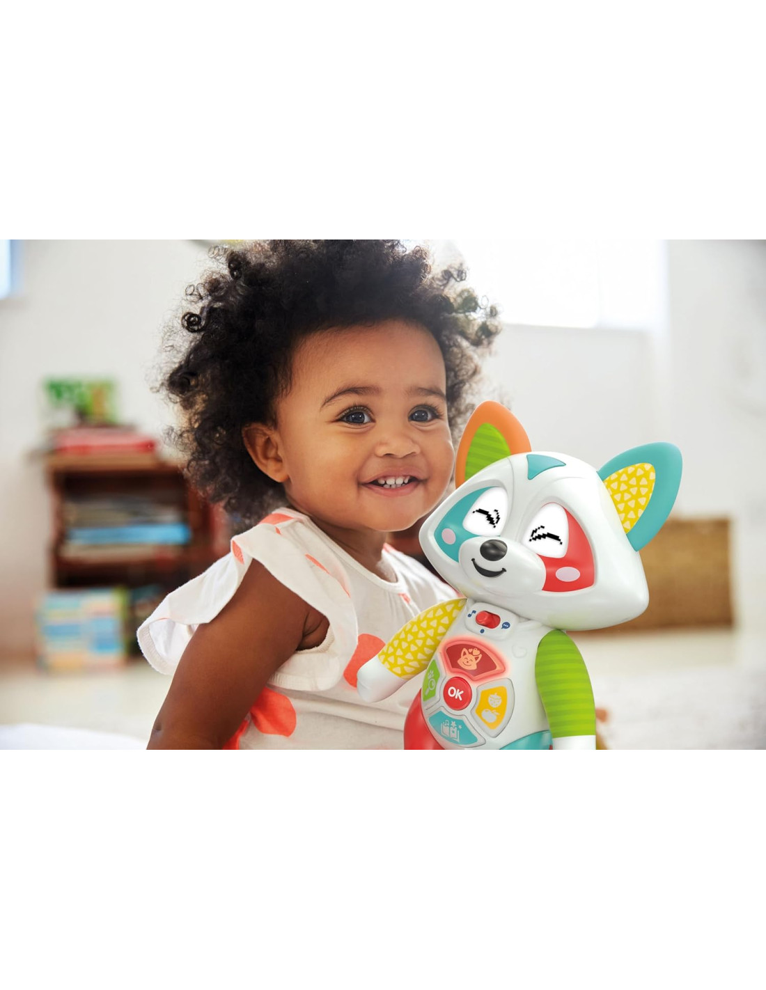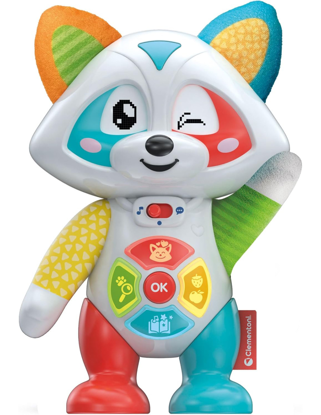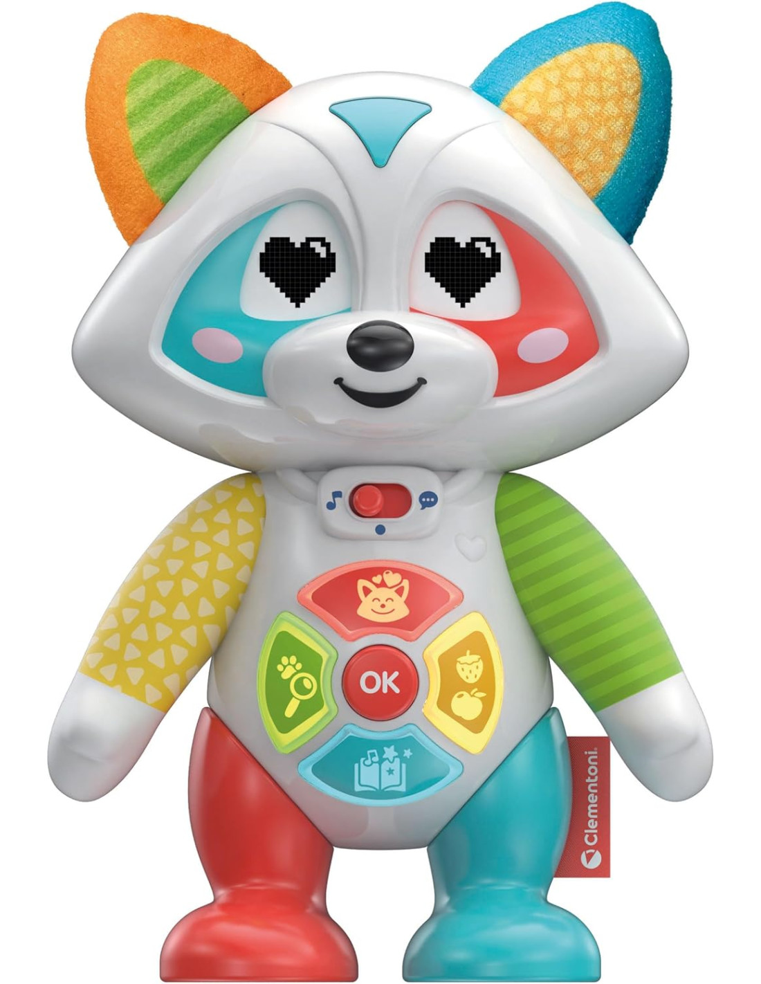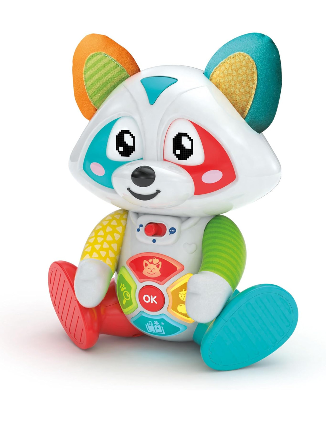 CARATTERISTICHE: Questo dolce procione è realizzato in plastica ma presenta elementi in stoffa come le orecchie e le braccia, mentre le gambe sono snodabili. 2 modalità di gioco: prime interazioni e prime parole