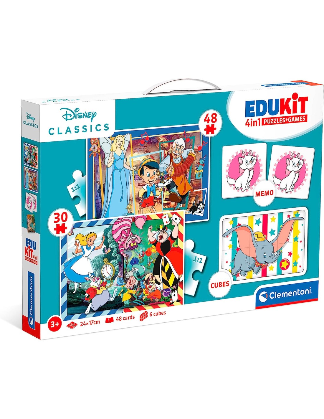Clementoni Edukit 4 in 1-Disney Classics-Set di Giochi 30 48 Pezzi, Memo e 6 Cubi, Educativo 4 Anni, Gioco Memory