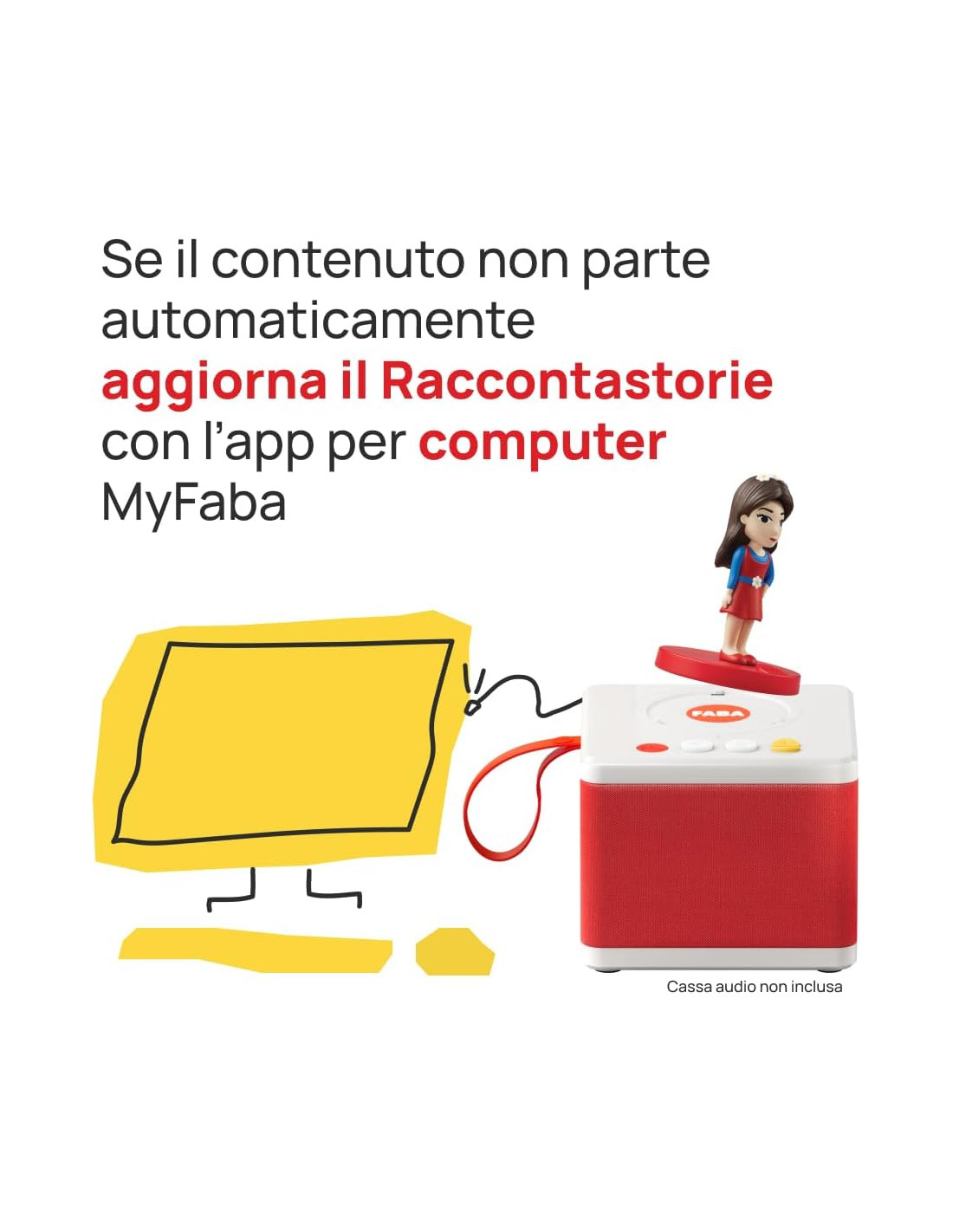 Se appoggiando il Personaggio Sonoro su FABA Raccontastorie il contenuto non parte automaticamente, è necessario fare un aggiornamento con l'app per computer MyFaba
