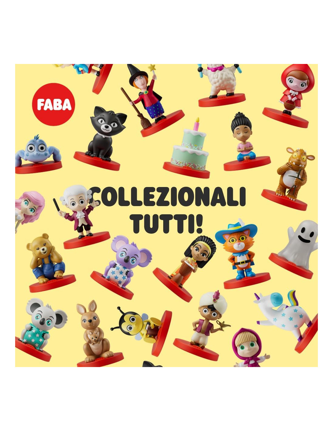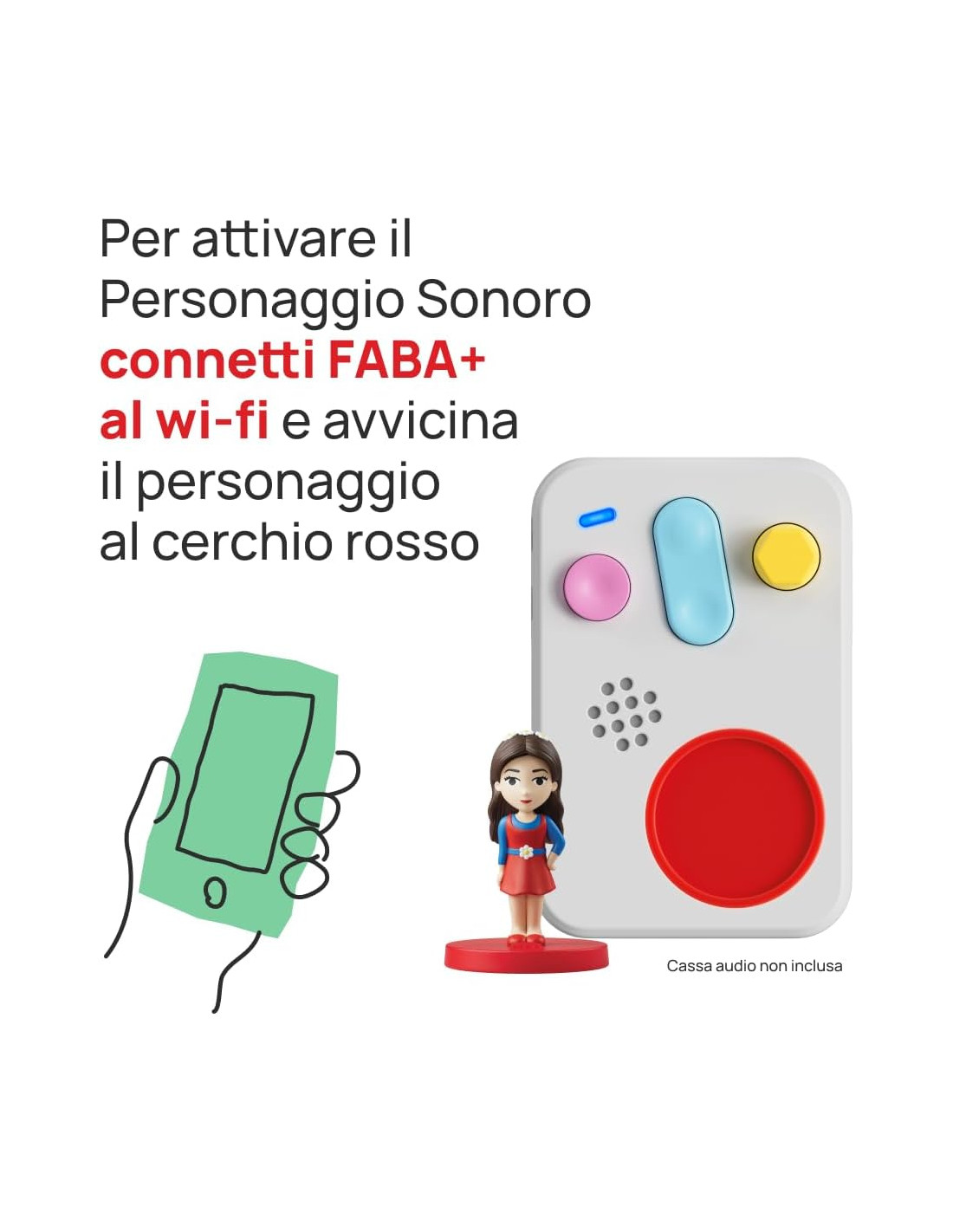 PERSONAGGIO SONORO da posizionare su FABA Raccontastorie o sul Raccontastorie interattivo FABA+ grazie al quale bambini e bambine possono ascoltare in autonomia storie, canzoni e filastrocche. Il Raccontastorie non è incluso.