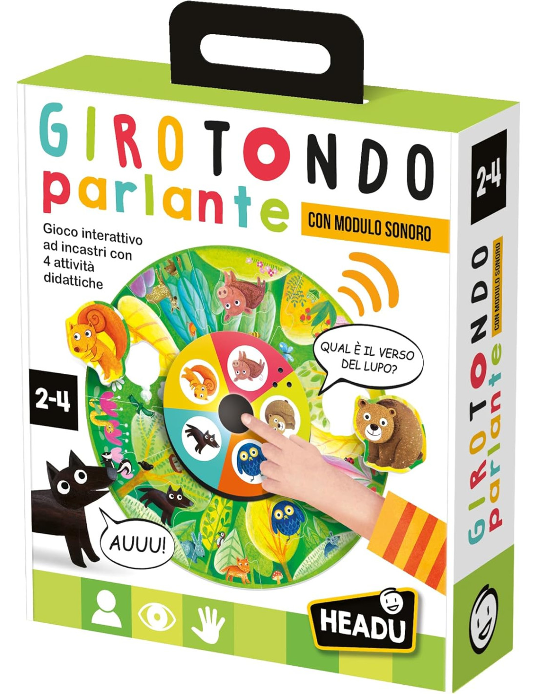 GIOCO EDUCATIVO per insegnare mondi a confronto ed aiutare lo sviluppo delle intelligenze personali in età prescolare. Adatto ai bambini 2-4 anni. MADE IN ITALY con materiali di ALTA QUALITA', resistenti e sicuri per bambini. Sviluppato in collaborazione con INSEGNANTI e PROFESSIONISTI con tantissime attività didattiche ispirate dal METODO MONTESSORI. ISTRUZIONI SEMPLICI per genitori e bambini per incoraggiare l'APPRENDIMENTO A CASA e favorire l'utilizzo in ATTIVITA' DI CLASSE da parte di insegnanti e professionisti. OTTIMI CONTENUTI per giocare in più modi e divertirsi imparando: Puzzle circolare di 10 pezzi; 5 animali sagomati; Modulo sonoro; 18 gettoni girotondo; Regolamento