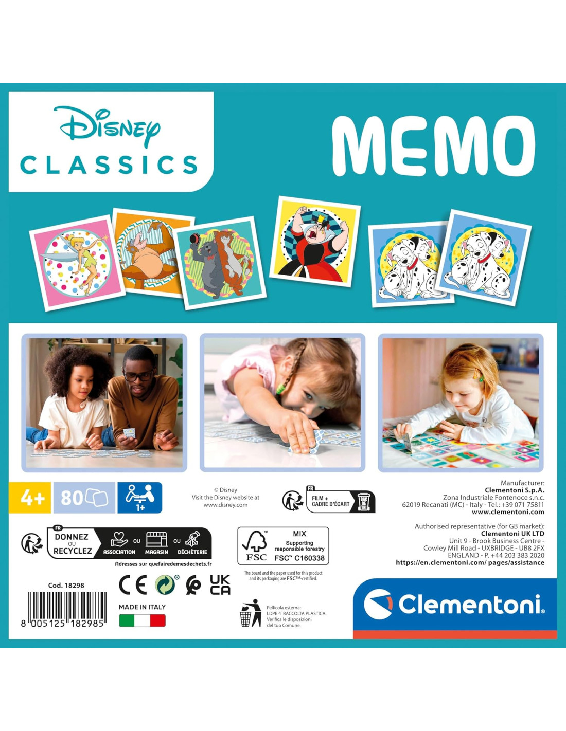 Clementoni - 18298 - Memo Disney Classics - Gioco Di Memoria E Associazione, Carte Da Accoppiare, Gioco Educativo Bambini 4 Anni, Gioco Di Carte, Gioco Da Tavolo Bambini